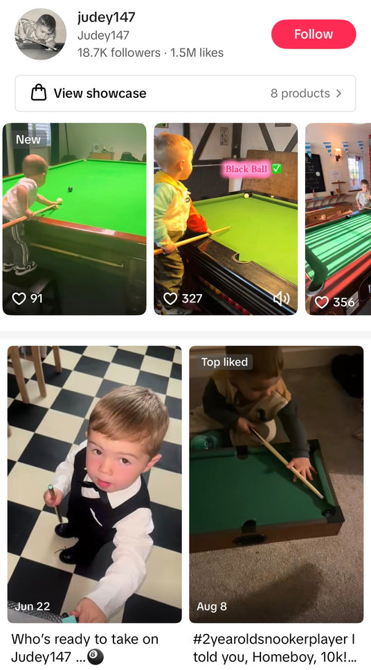 Managed by his parents, the Judey147 socials are full of heartwarming, skill-packed clips that show just how early the love for the game can start. Whether it’s potting balls with a mini cue or showing off his latest Taom chalk, Judey’s charm and talent are building a loyal fanbase across the globe.