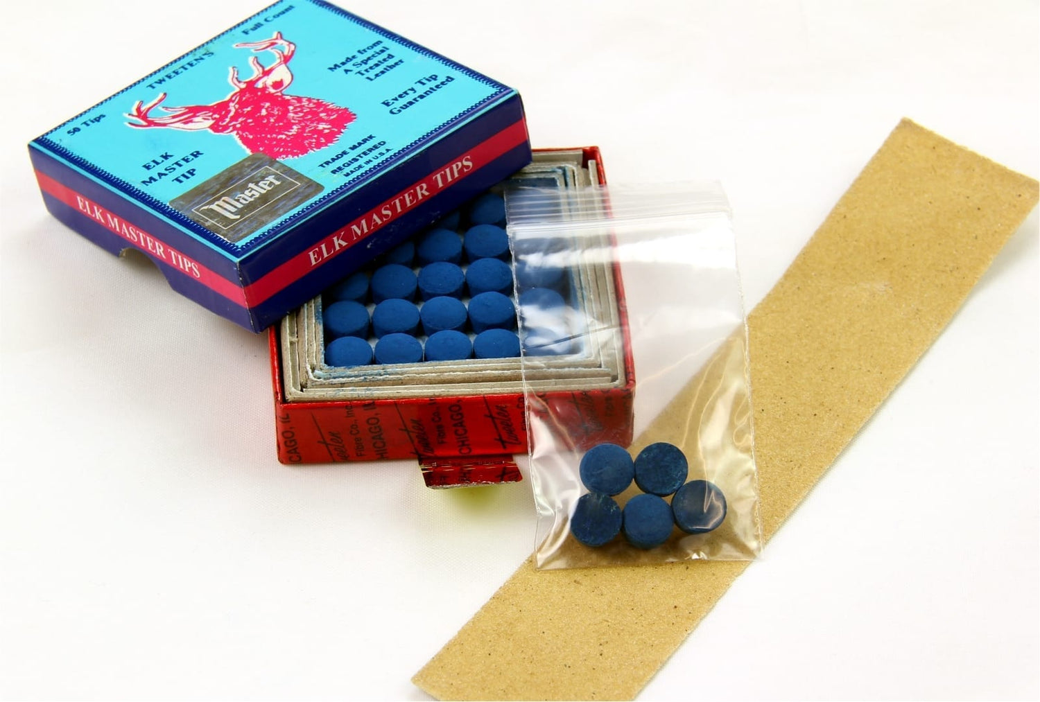 5 X 9.5mm Tweeten ELK MASTER Leather Snooker Pool Cue Tips - FREE Sandpaper