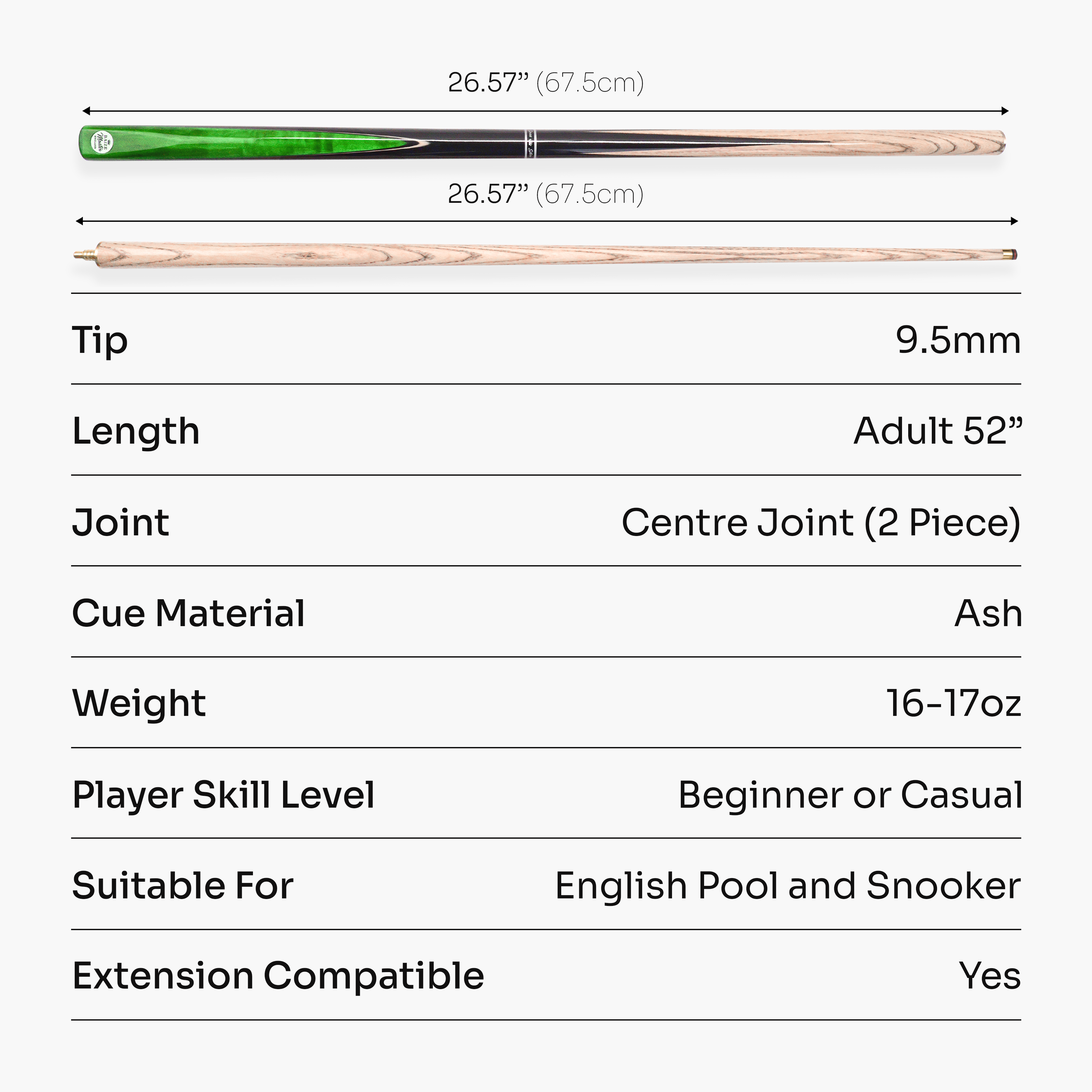 Baize Master CONQUEST 52 Inch 2 Piece Junior Snooker Pool Cue with 9.5mm Tip
