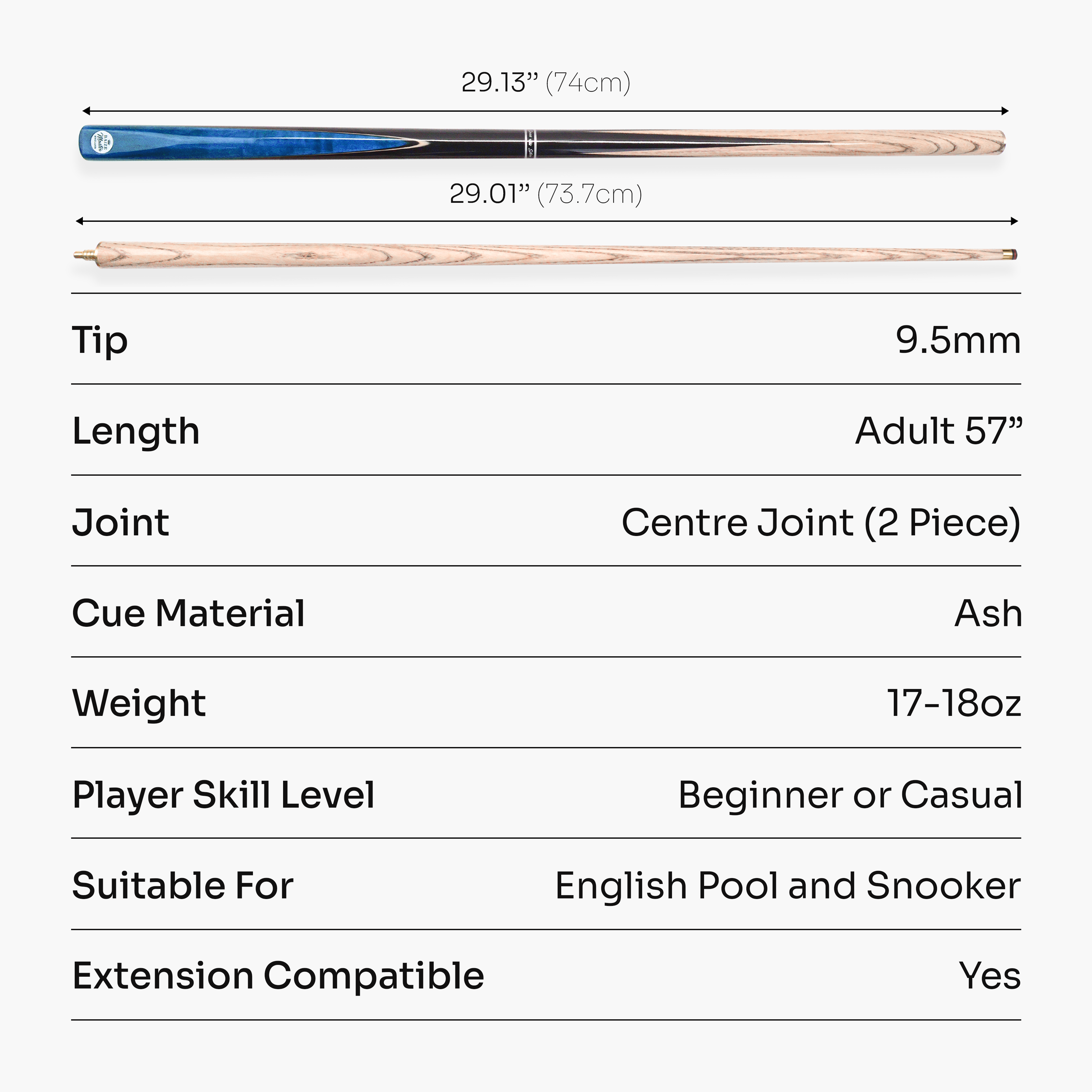 Baize Master 57 Inch CONQUEST 2 Piece Snooker Pool Cue Matching Ash Shaft 9.5mm Tip - Blue is backordered and will ship as soon as it is back in stock.
