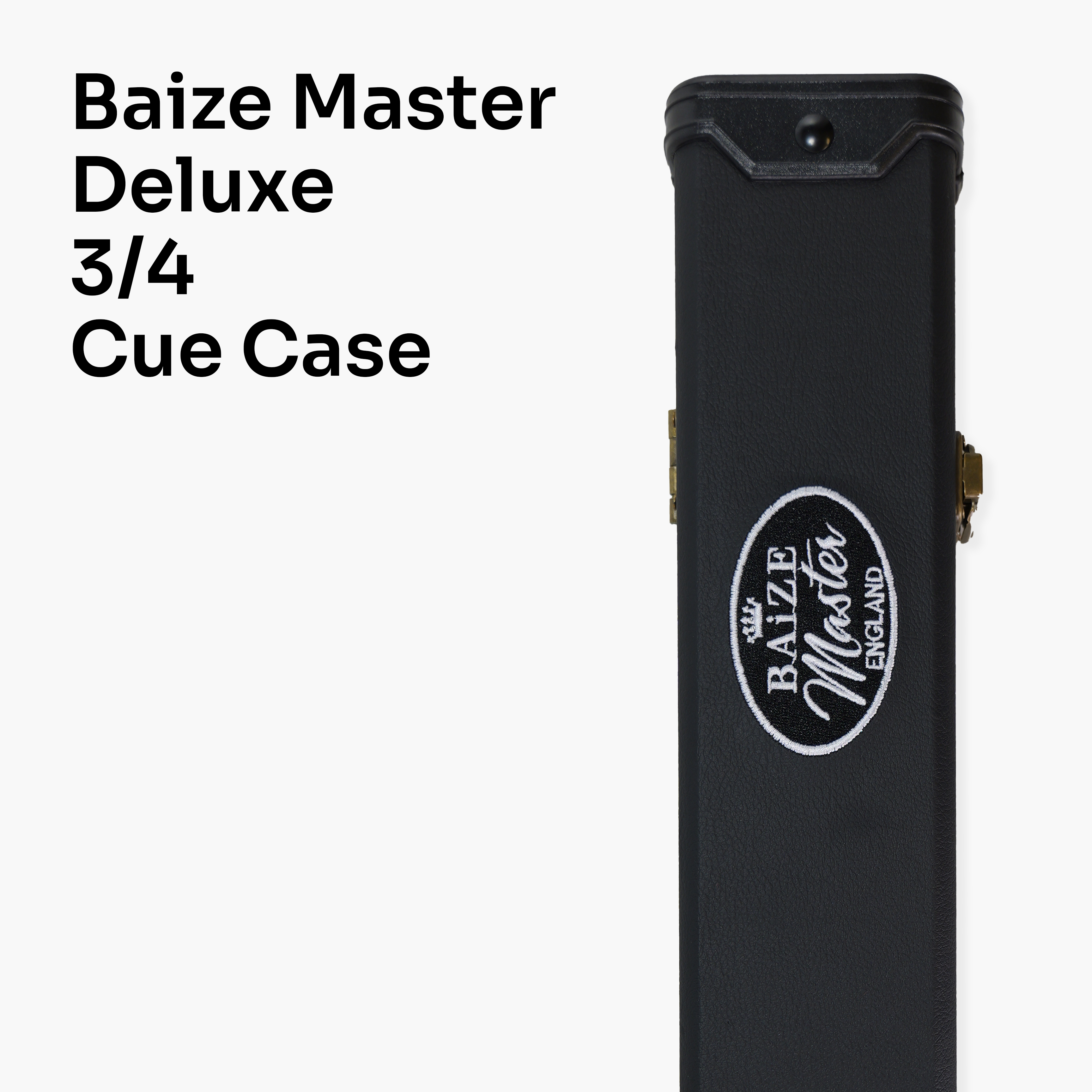 Our deluxe Baize Master 3/4 cue cases feature chunky plastic ends for improved protection mixed with a clean and simple black leatherette external design. Combined with an internal chalk compartment and suede style padded interior to hold the cue tightly in place - this case offers the perfect blend of stylish looks and practical function.