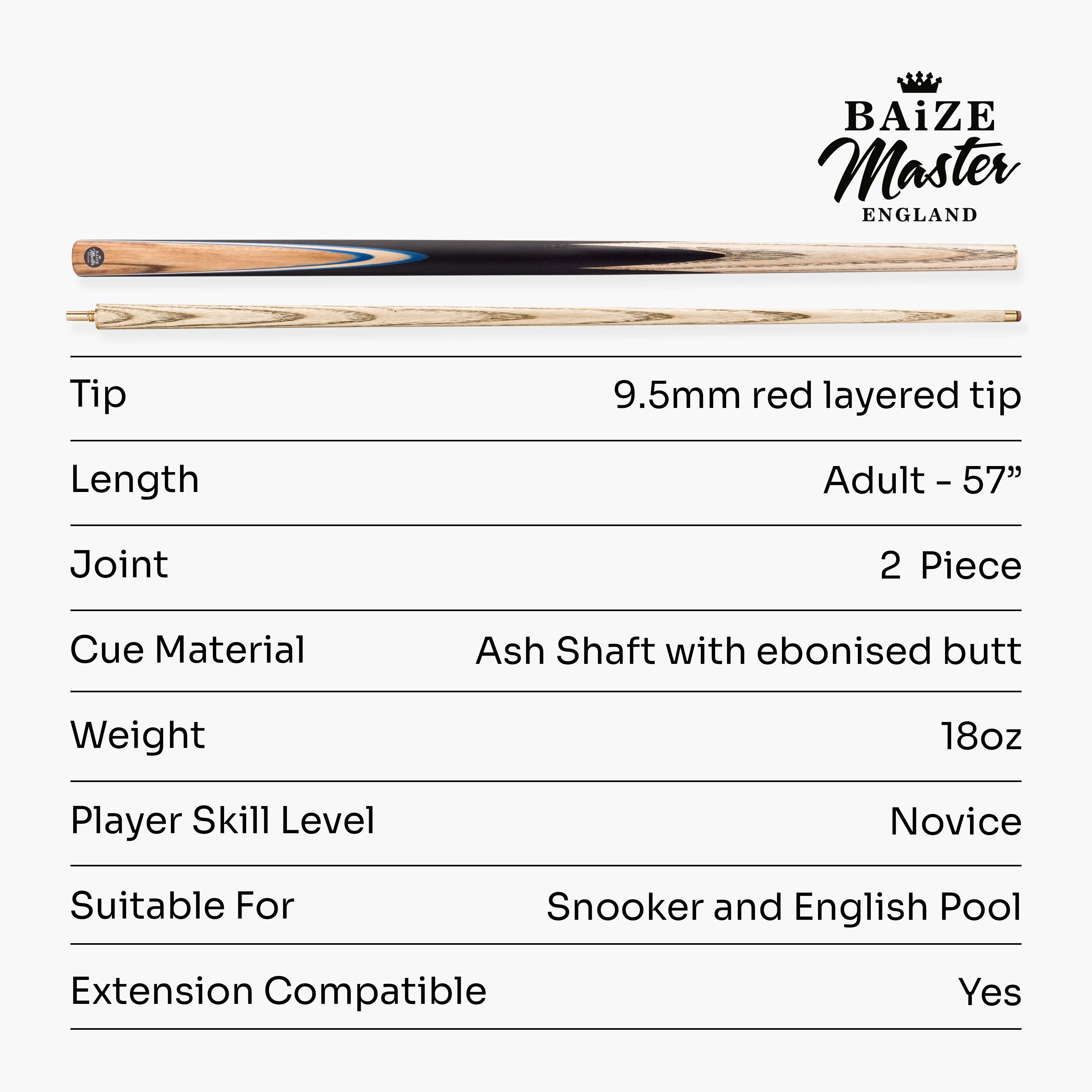 - Approx 145cm (57”) cue length with a centre joint