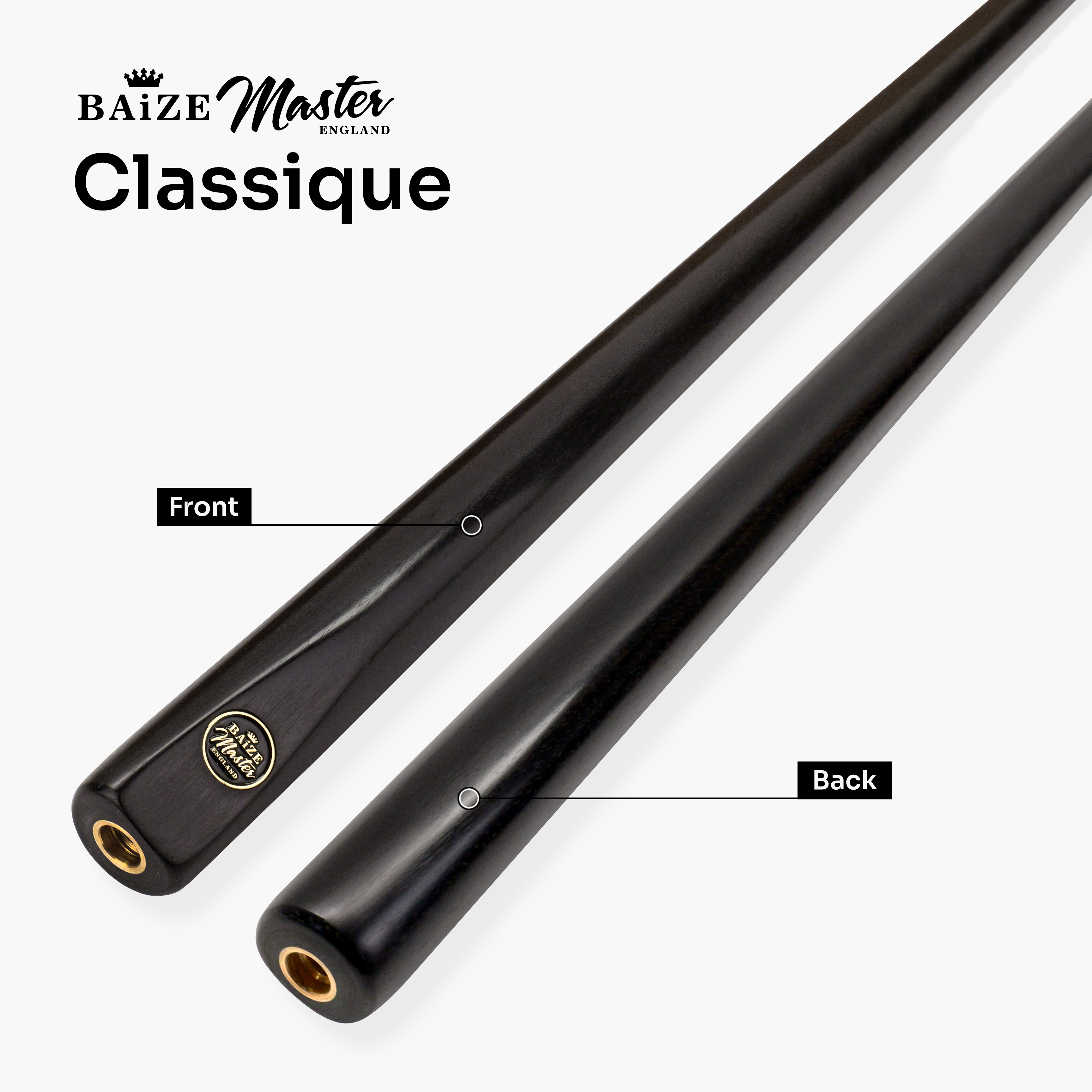 Baize Master CLASSIQUE 57 Inch One Piece Ebony Butt English Pool Cue and Case Set 8.5mm Tip