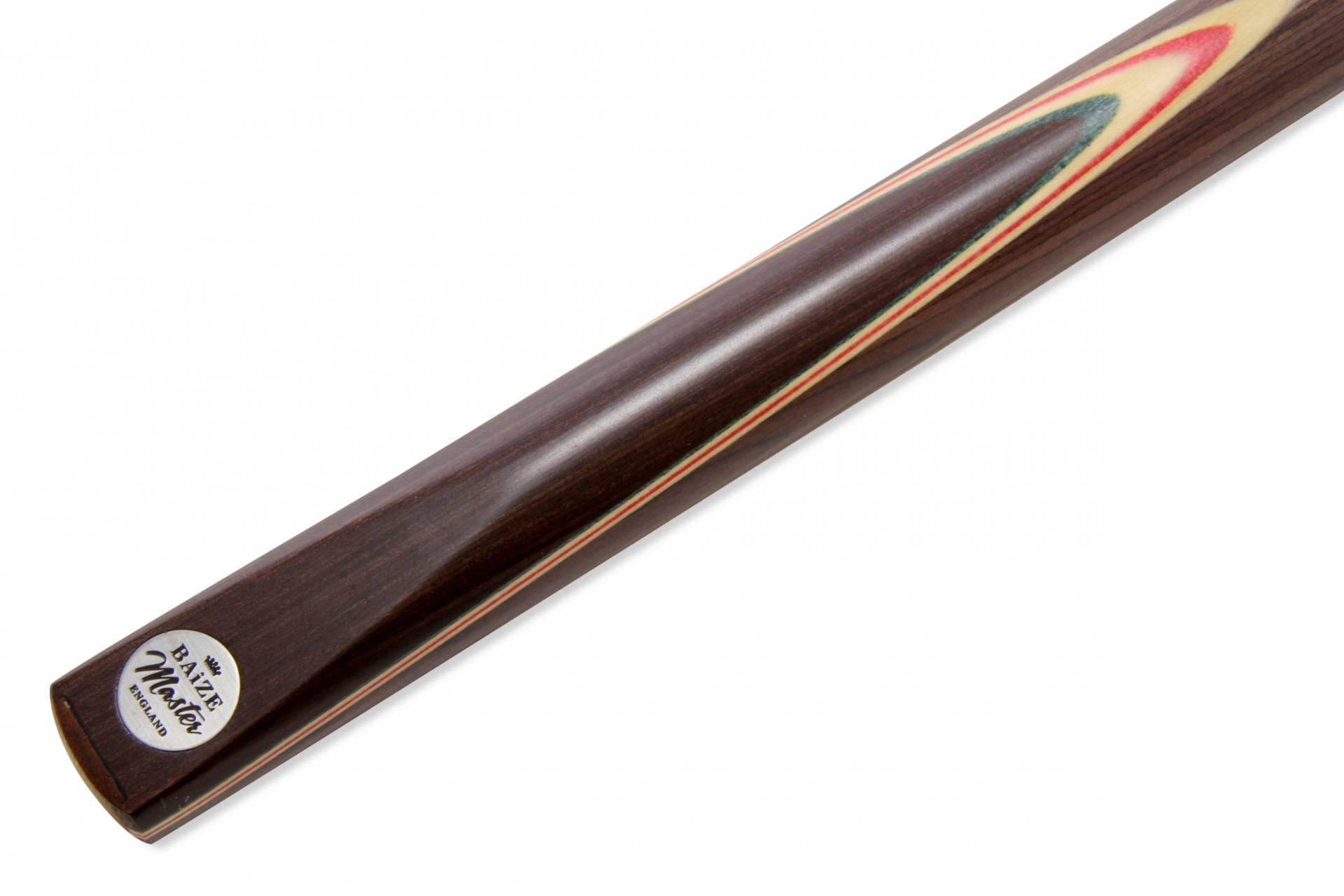 Our high quality Elite cues by Baize Master feature a stunning single faced, stained maple front splice with complimenting red and green veneers. The 4 point rosewood butt with a carefully sanded finish gives this cue a real luxury feel and compliments a super smooth cueing action. The cue features a good quality, layered leather tip, for better cue ball control, and has a genuine professional feel. The quality choice for snooker and pool, with butt extension capability and 3pc joint to alleviate difficulty in tight spaces.
