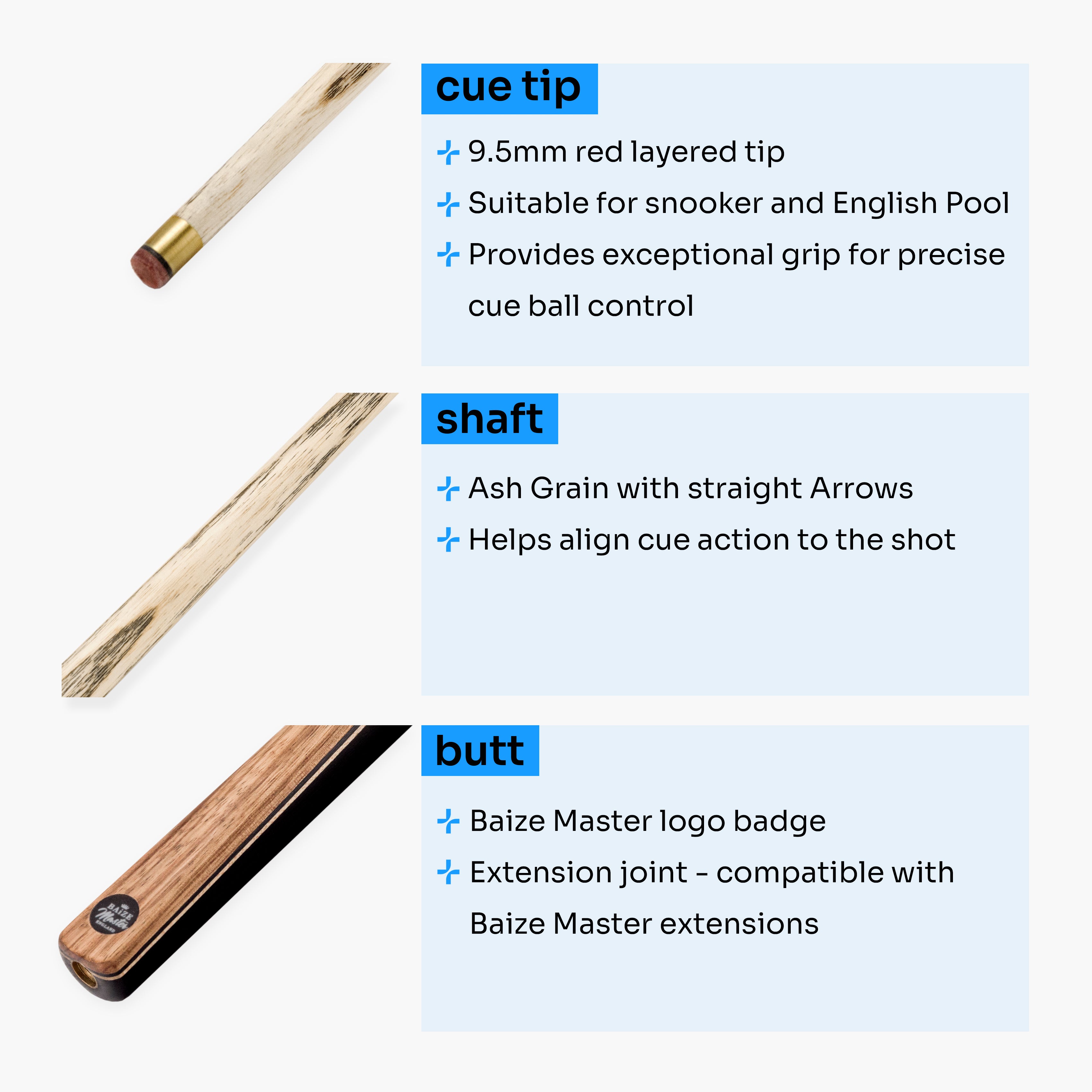 Baize Master Paragon 57 inch 2 Piece Snooker Pool Cue and Case Set 9.3mm Pro Leather Tip