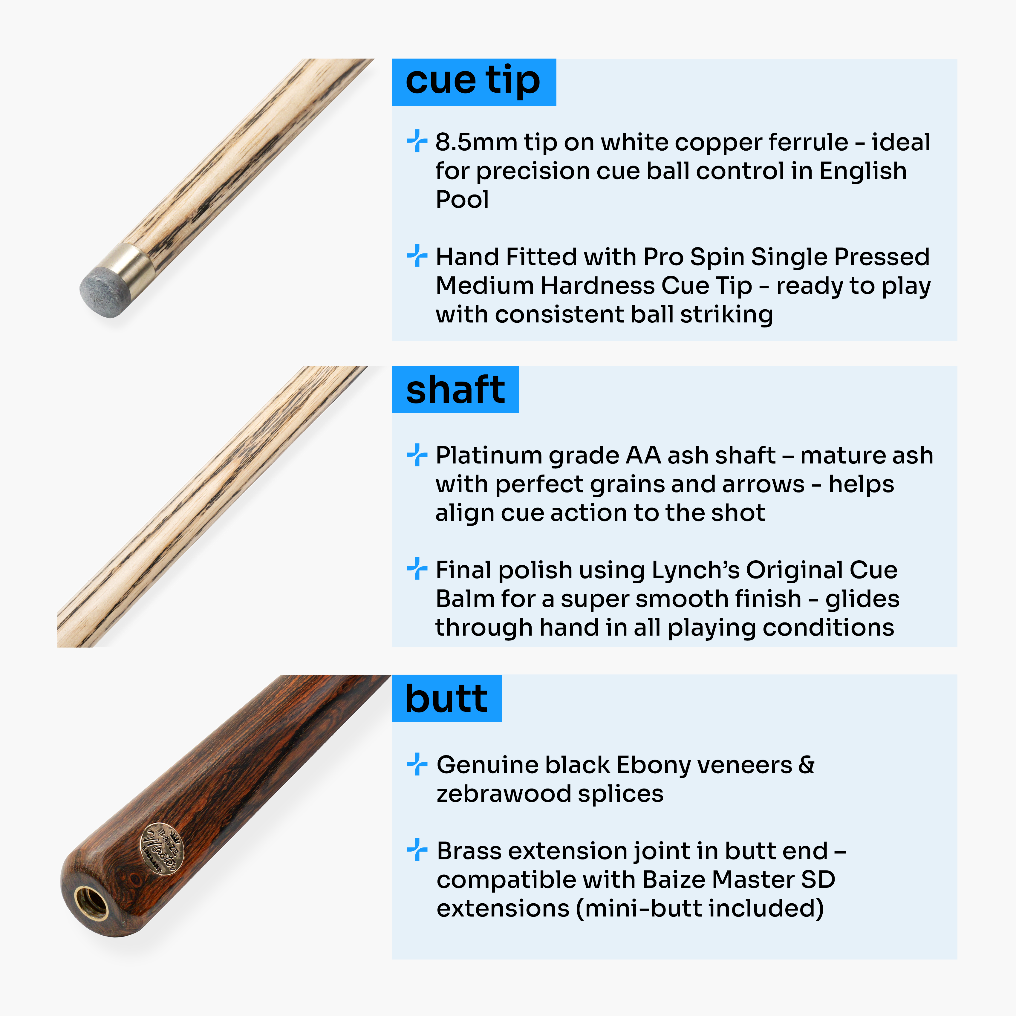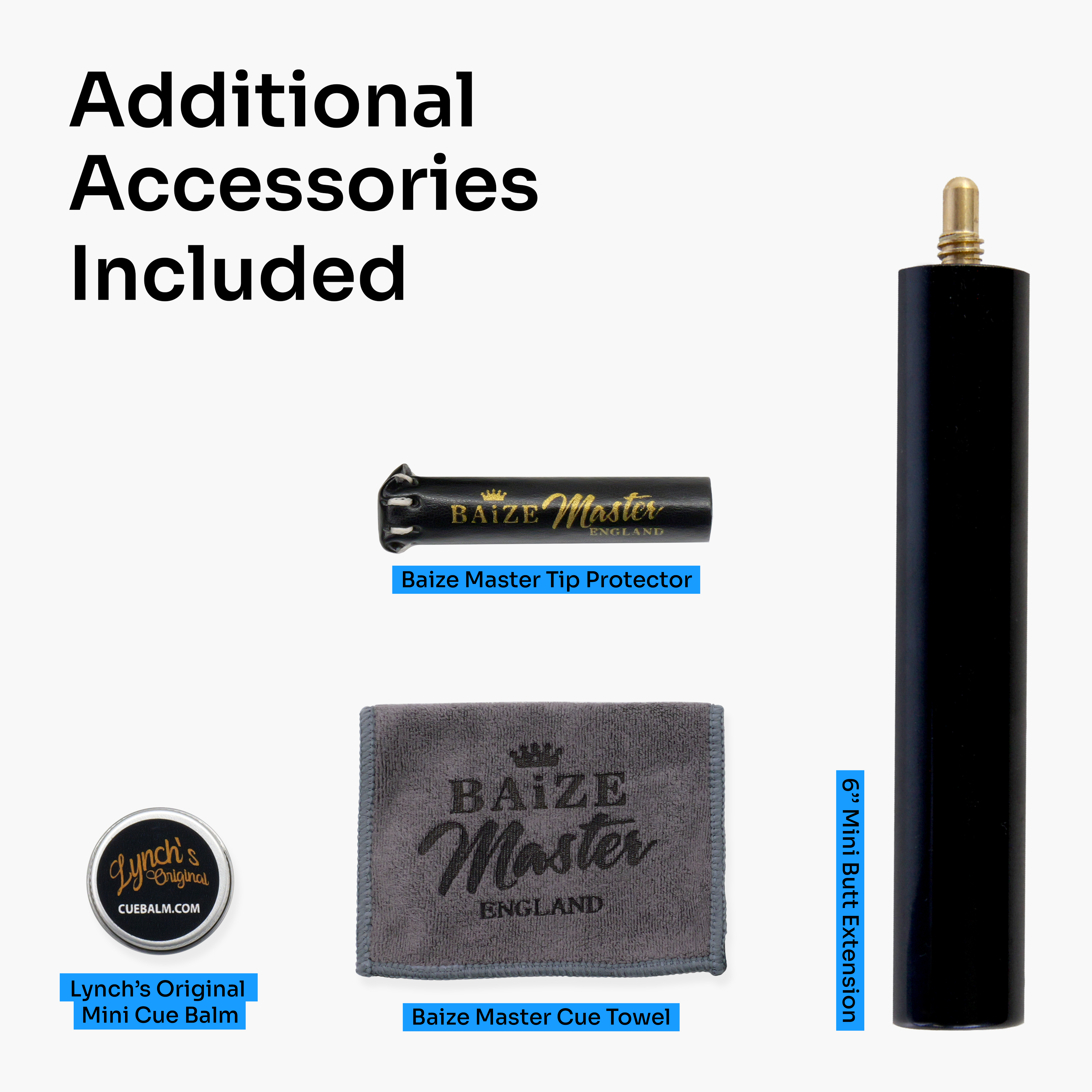 Includes a free mini butt extension, microfibre cue towel, tip protector, a mini tin of Lynch’s cue balm and a cue care tips leaflet!