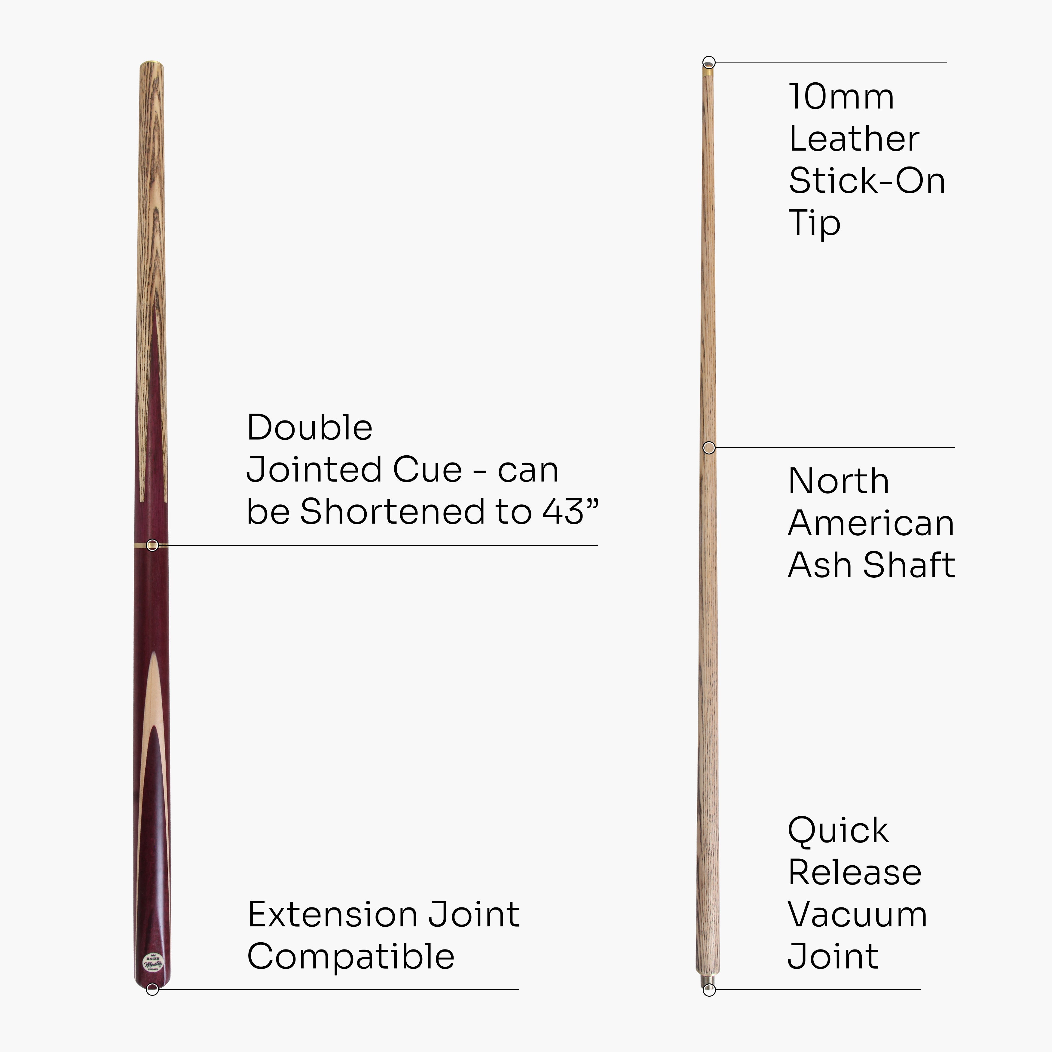 - Double jointed cue - can be shortened down to 43” for shots in tight spaces