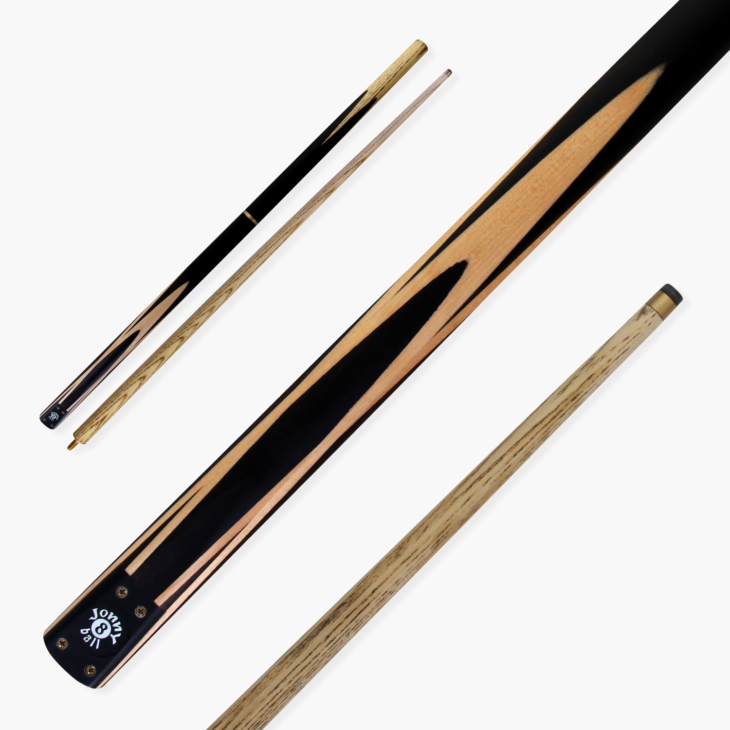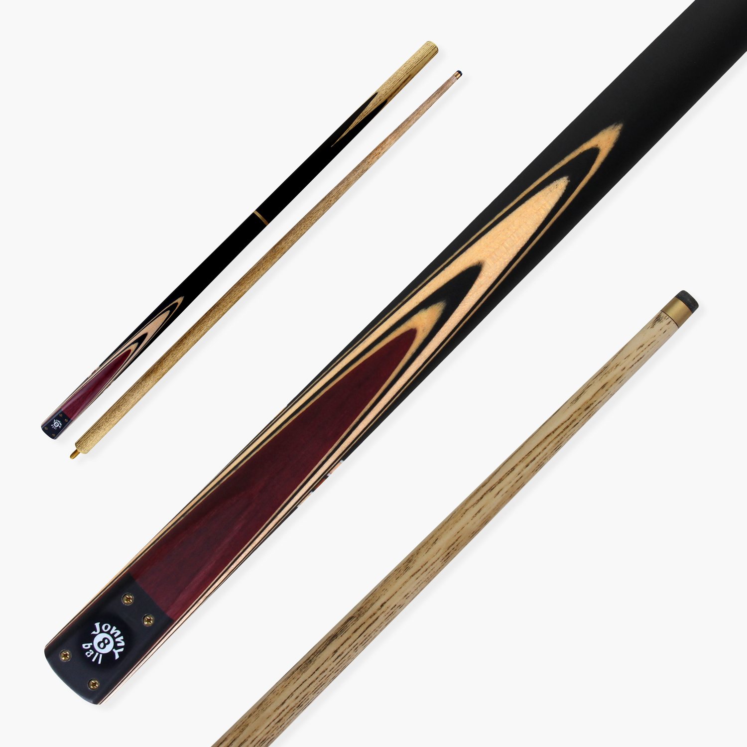 Fresh from the Jonny 8 Ball ‘Traditional Range’ is this superb hand-spliced effect cue with a unique 3 piece construction. Easily shorten this cue from 57” to 44” for taking shots in tight spaces, alleviating difficulty whilst playing in tight spaces making it perfect for pub or home use. With a smaller 9mm tip, this cue is ideal for English pool but can also be used for snooker.
