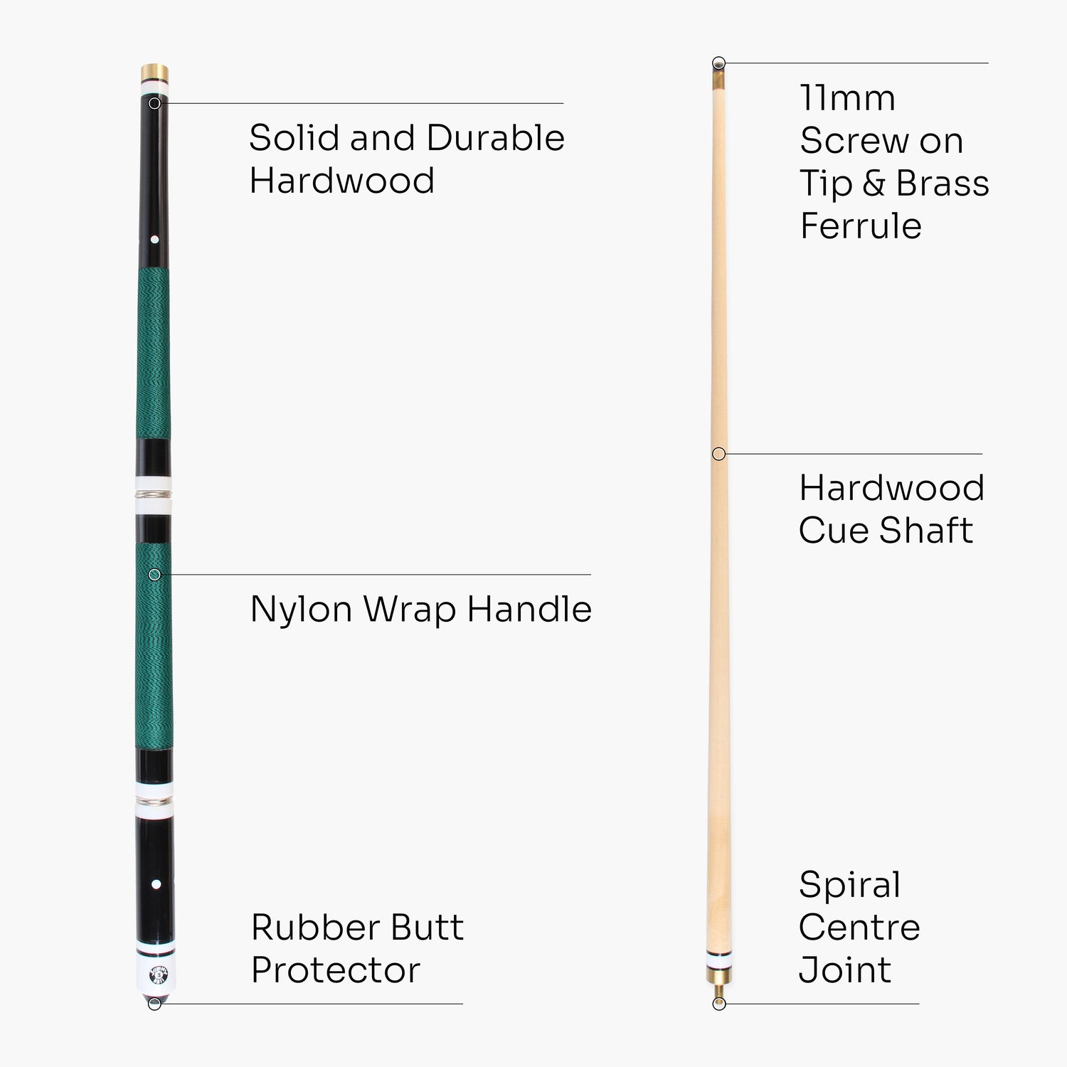 - Rubber butt protector - for added cue protection against knocks and bumps