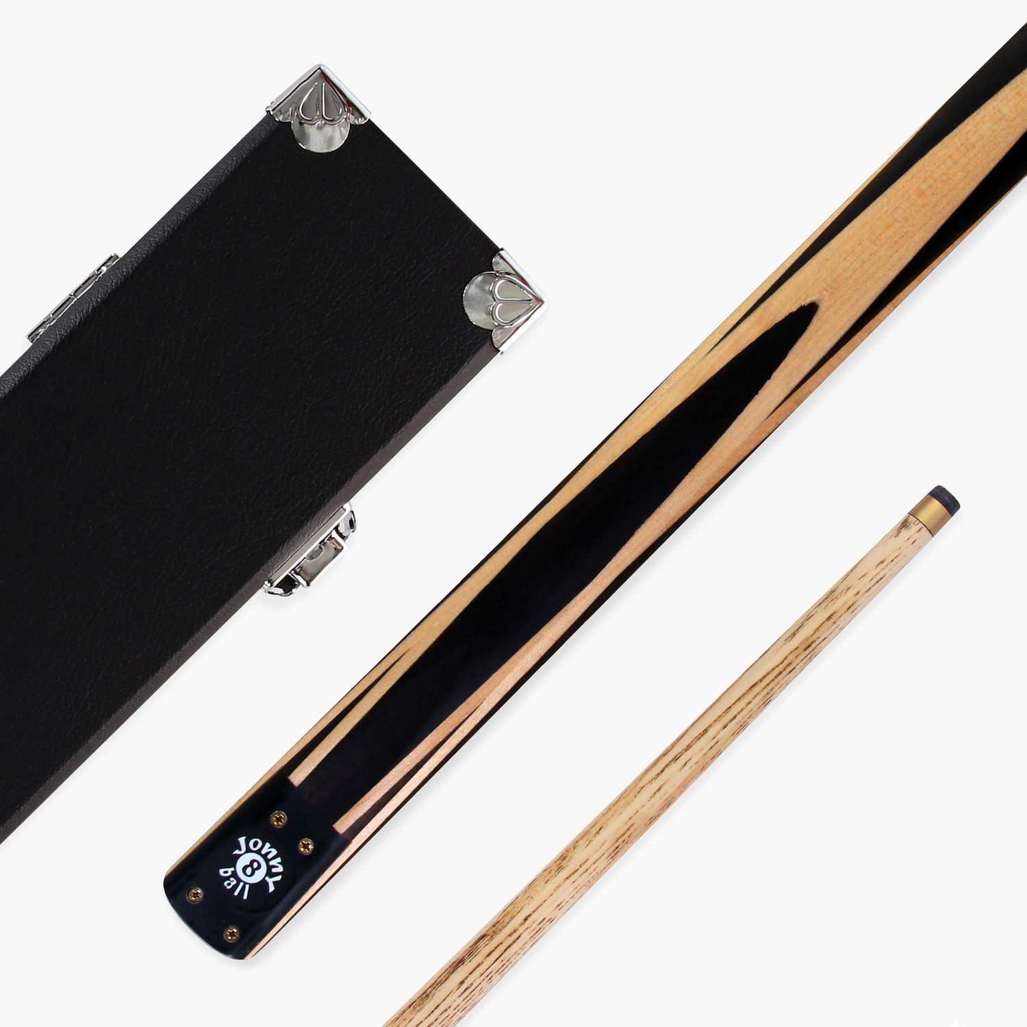 Fresh from the Jonny 8 Ball ‘Traditional Range’ is this superb hand-spliced effect cue with a unique 3 piece construction. Easily shorten this cue from 57” to 44” for taking shots in tight spaces, alleviating difficulty whilst playing in tight spaces making it perfect for pub or home use. With a smaller 9mm tip, this cue is ideal for English pool but can also be used for snooker. This cue and case set comprises the Jonny 8 Ball 3 Piece Traditional Cue and a Black Reinforced Hard Case for added protection and convenience in transport.