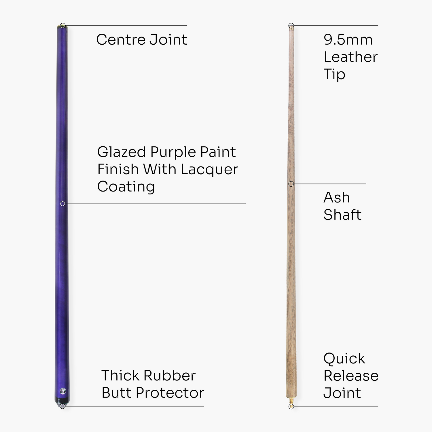 - 9.5mm leather 'stick-on' tip and brass ferrule