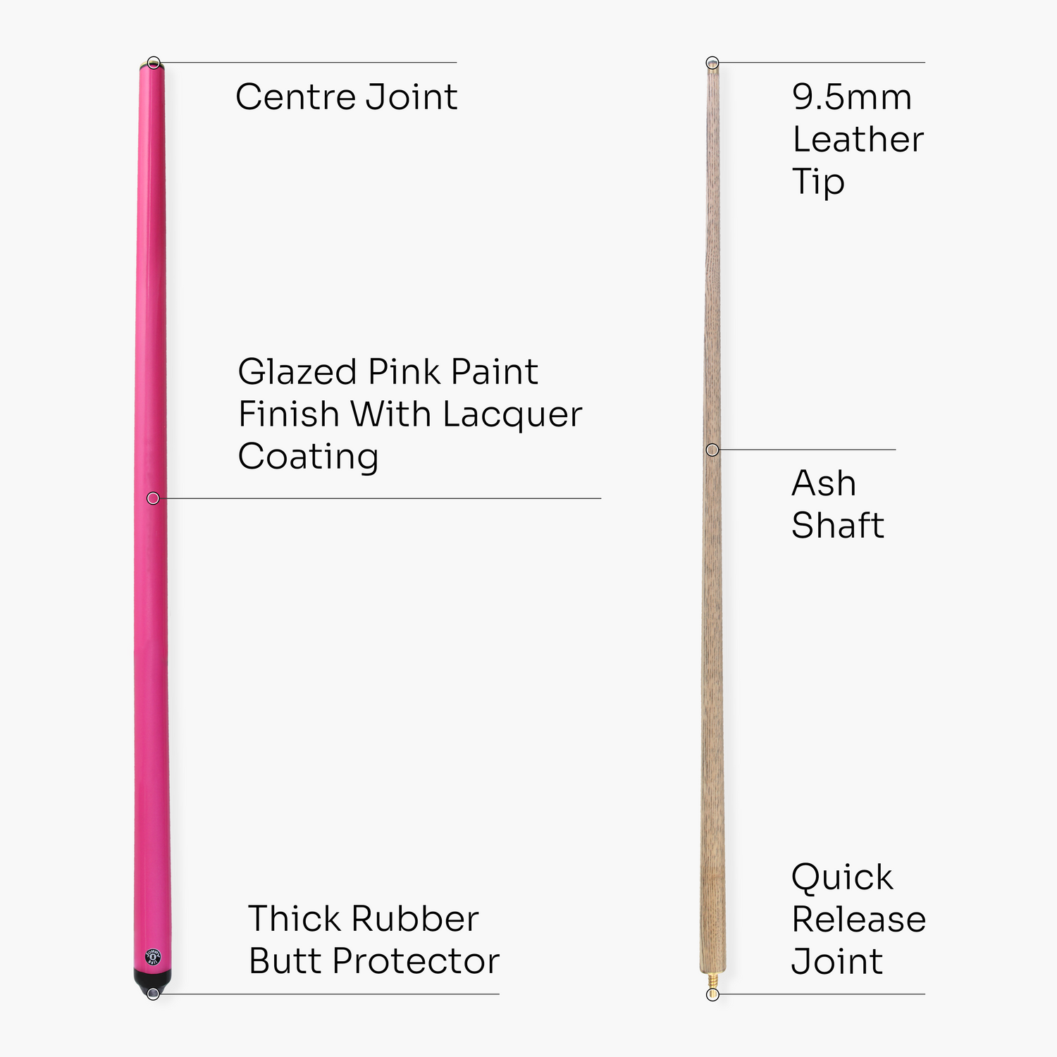 - Rubber butt bumper to protect cue - safely show your approval of a good shot!