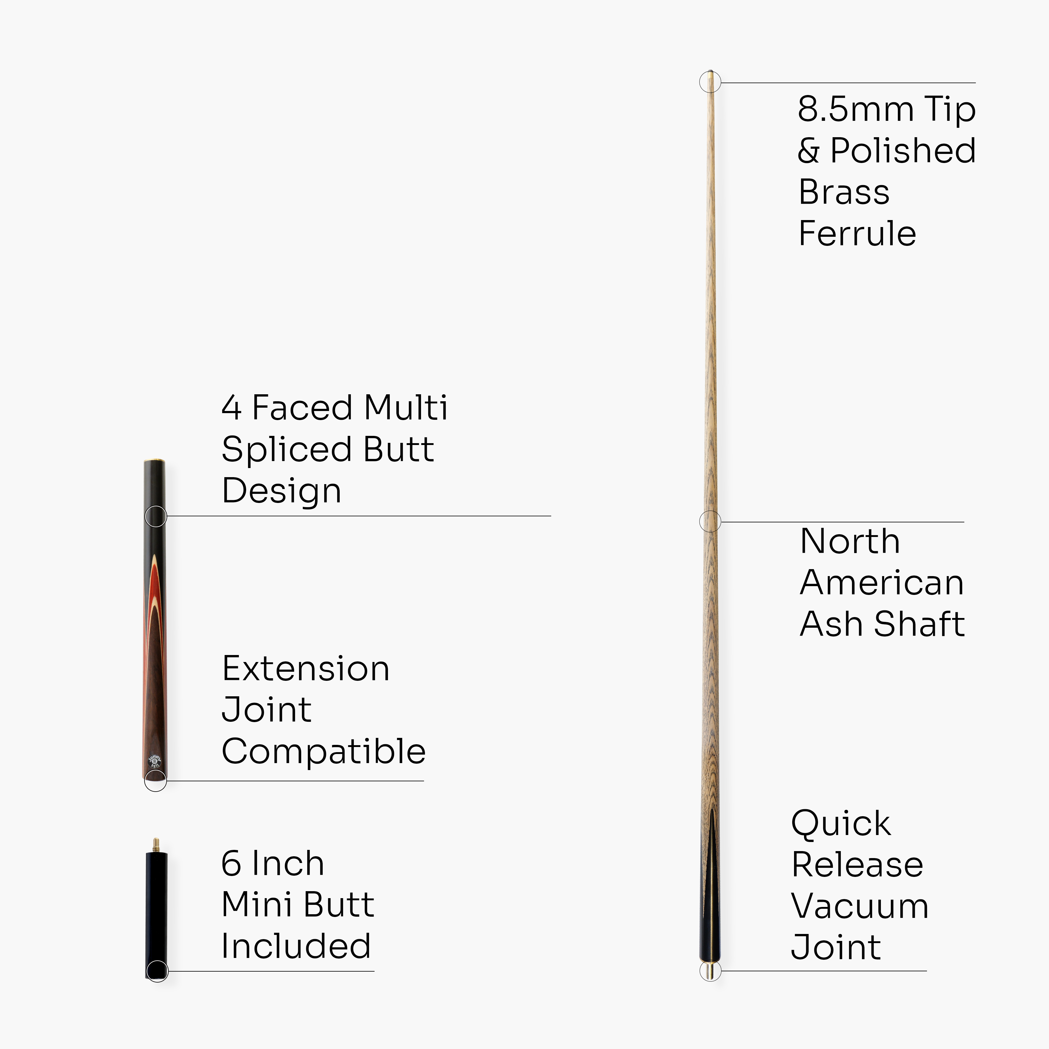 - Cue can be used for both snooker and English 8-ball pool