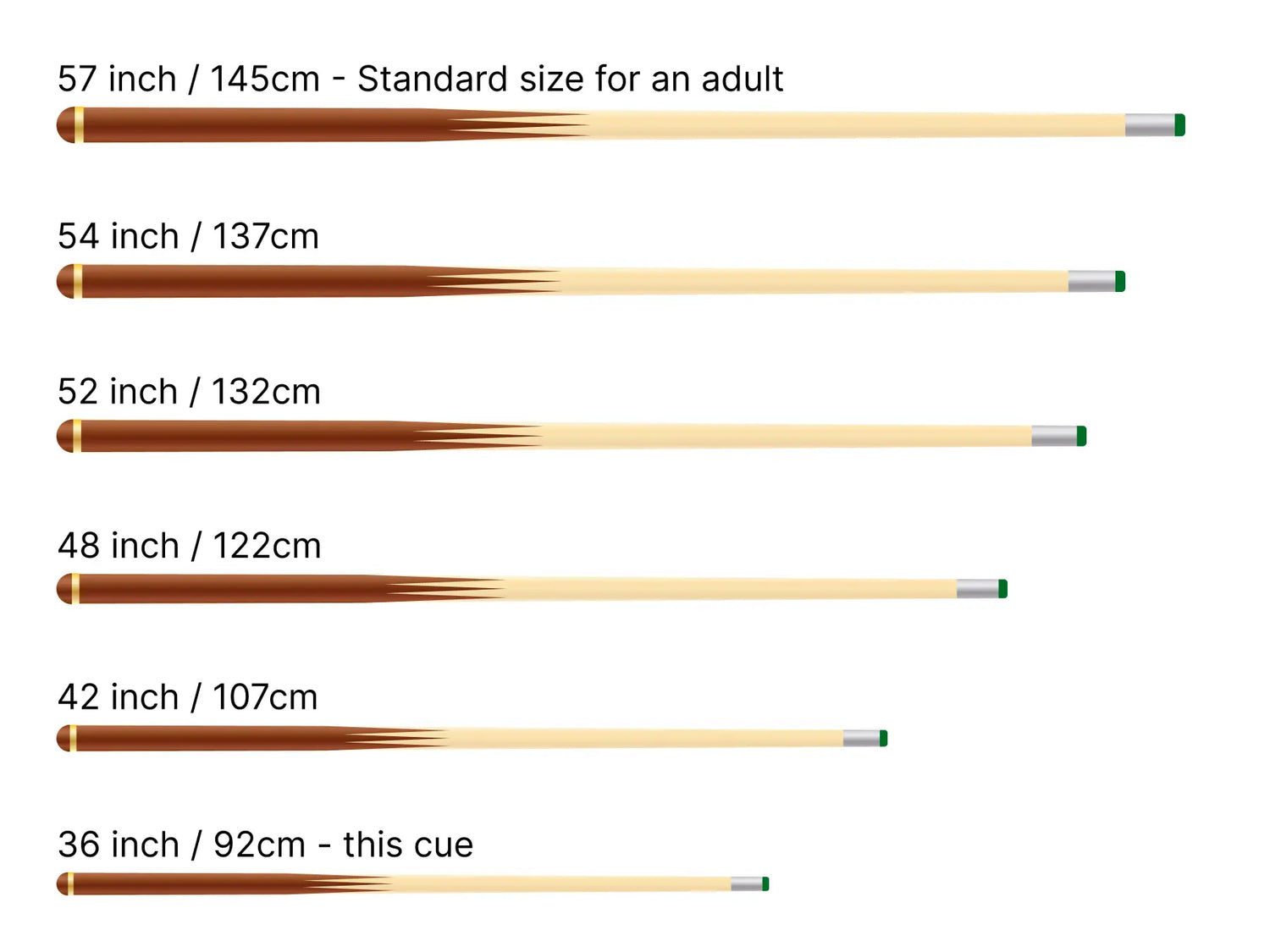 - Cue length measures approx. 36.61" (93cm)