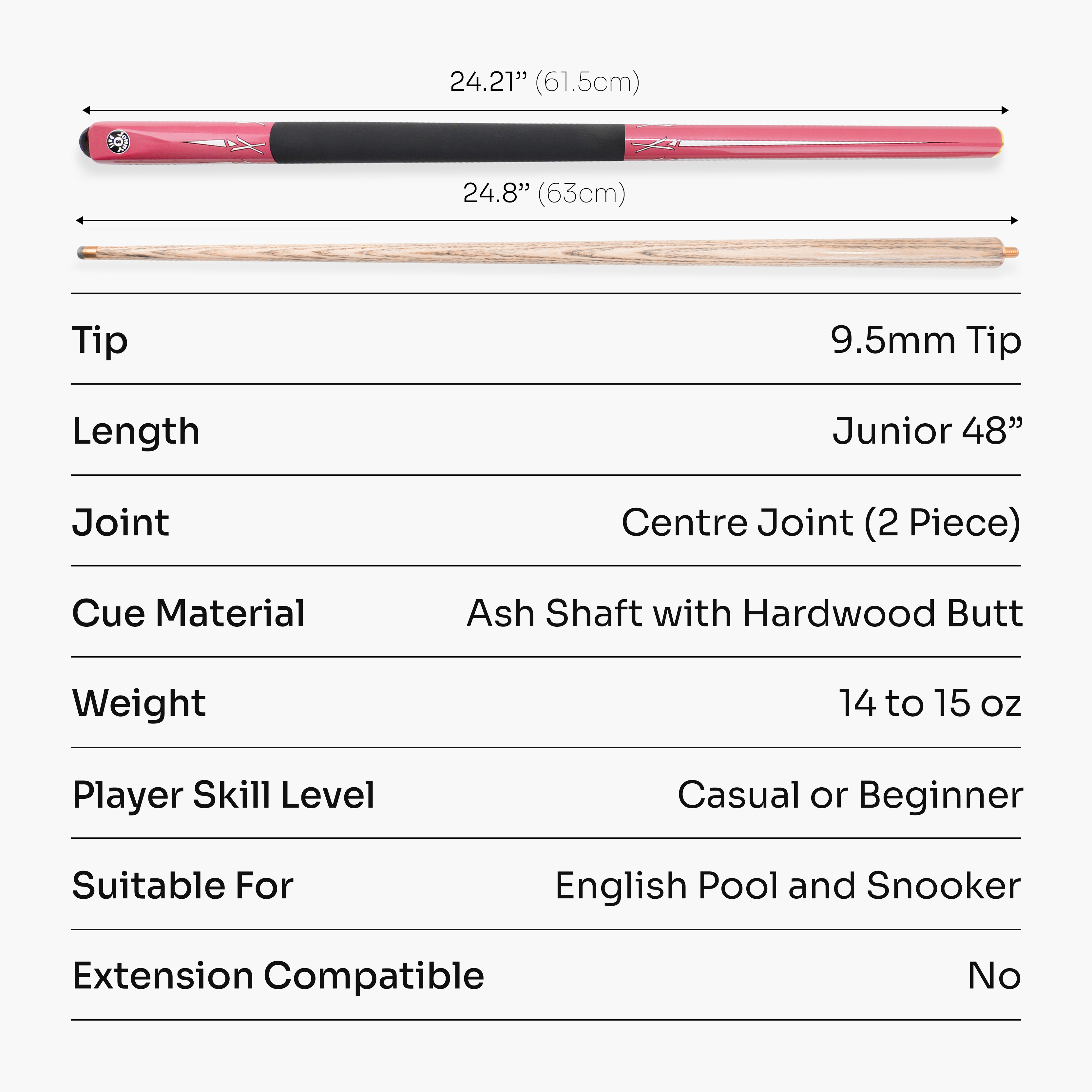 Jonny 8 Ball PINK TORPEDO 48 Inch 2 Piece Junior Kids Snooker Pool Cue 9.5mm Tip