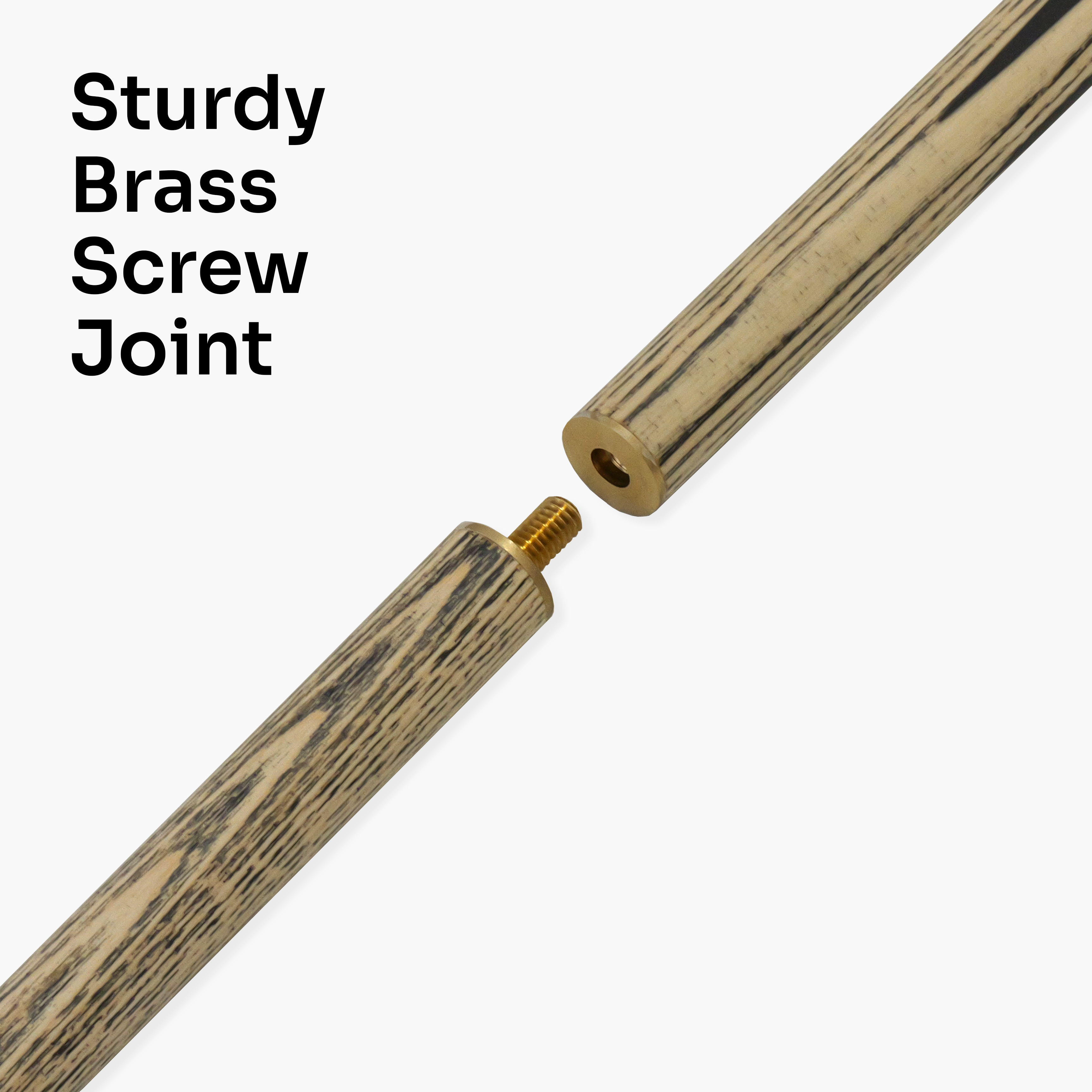 - 2pc cue where the butt and shaft are equal lengths – approx. 74cm each