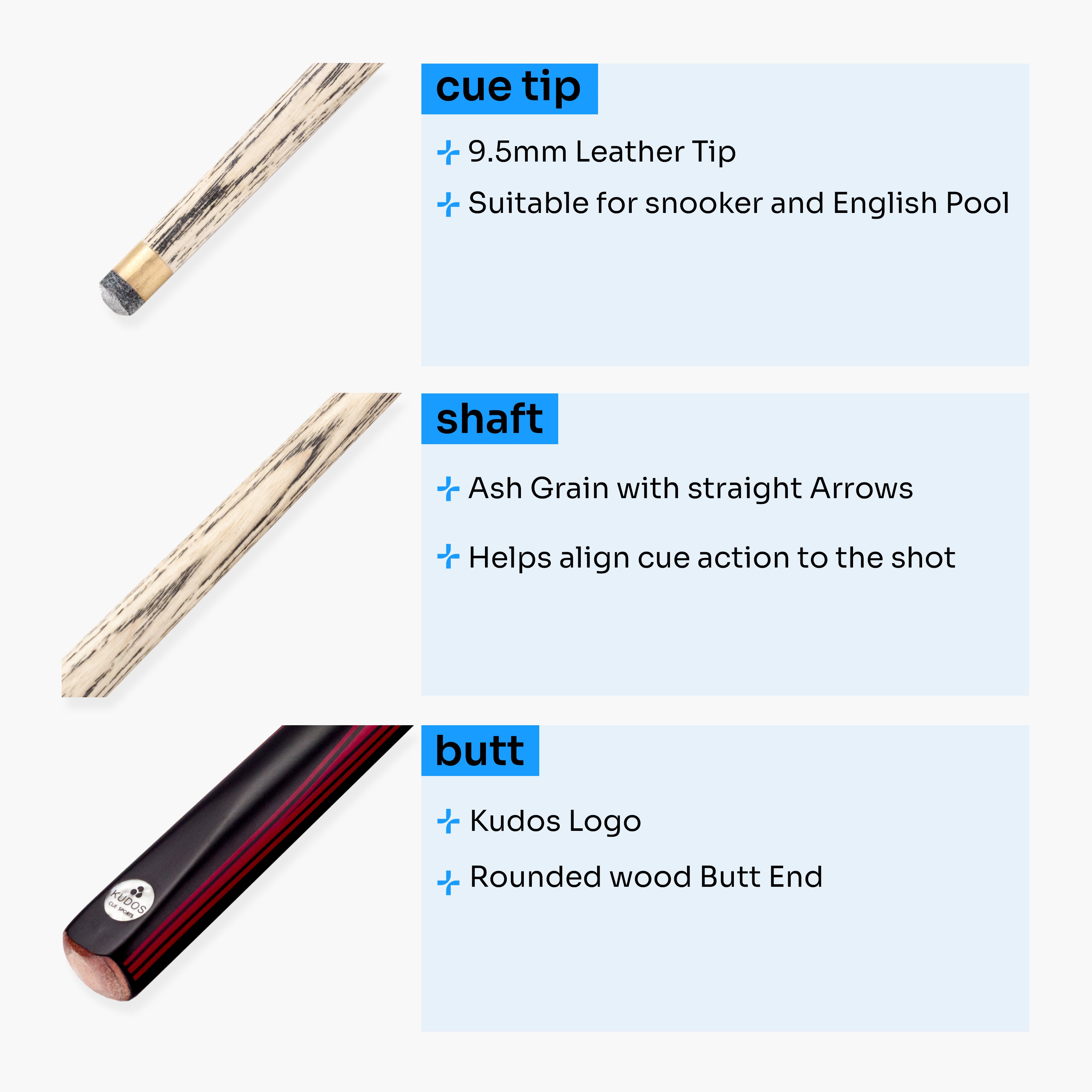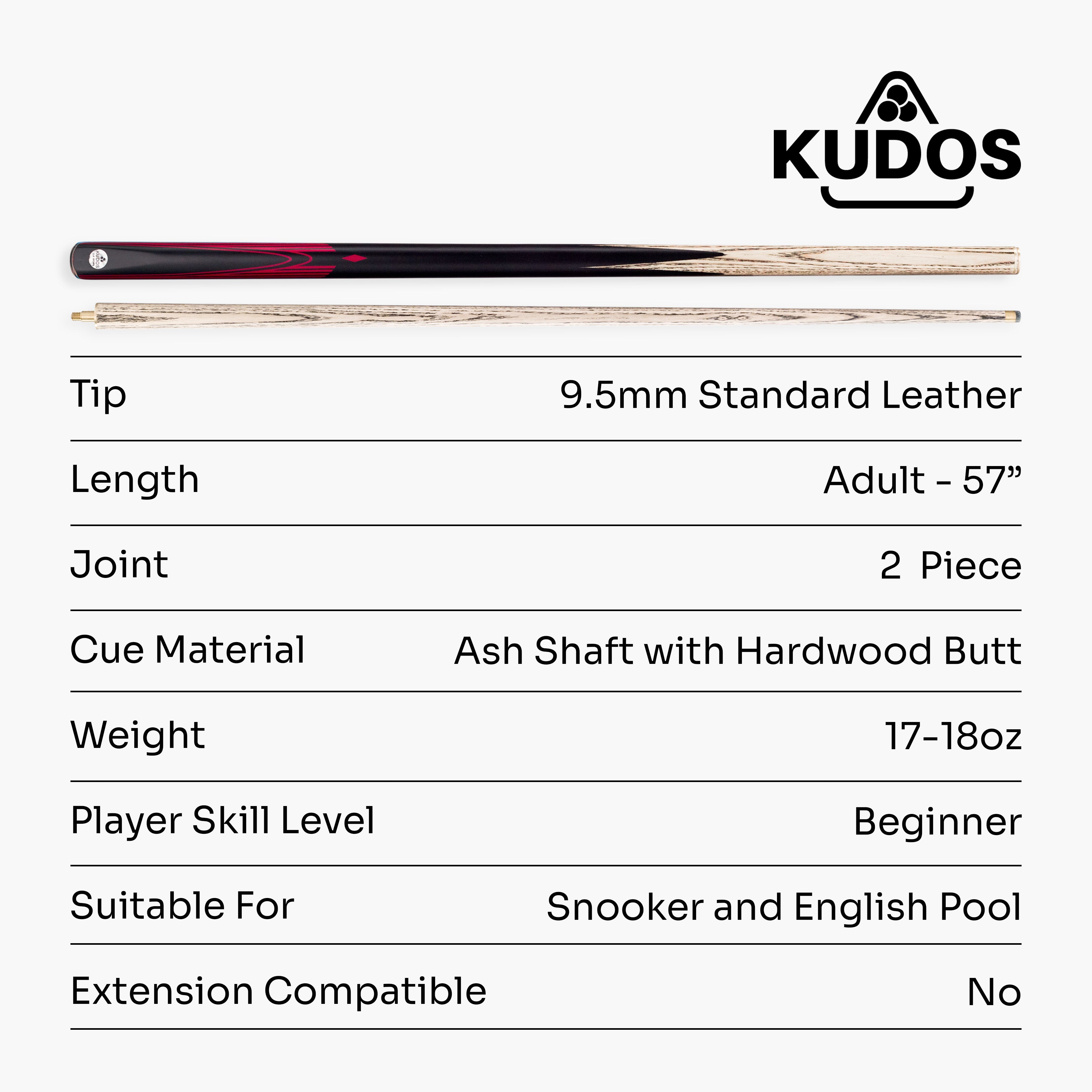The Kudos Diamond cue is perfect for those starting out in the game. This no-nonsense cue is designed for those wanting a good performing, traditional style snooker cue with a contemporary design twist. It is available in both blue and red and offers fantastic value for money, featuring a matching ash grain butt and shaft.
