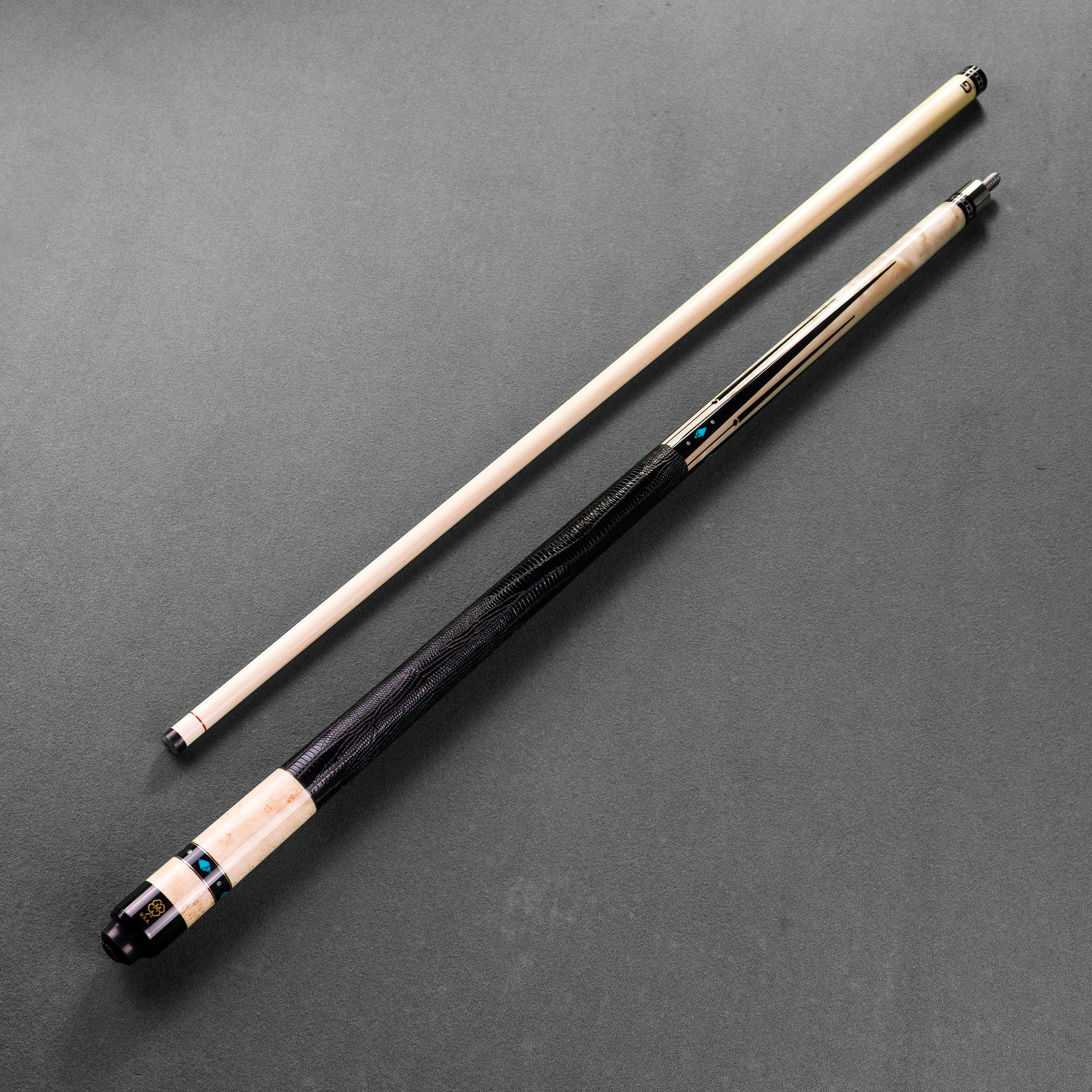 The construction of each cue consists of over 150 separate procedures. The butt is handcrafted using the finest materials and handpicked exotic woods from around the world. Each shaft uses the finest North American hard rock Maple. Hand selected the shafts are turned 11 times for stability.