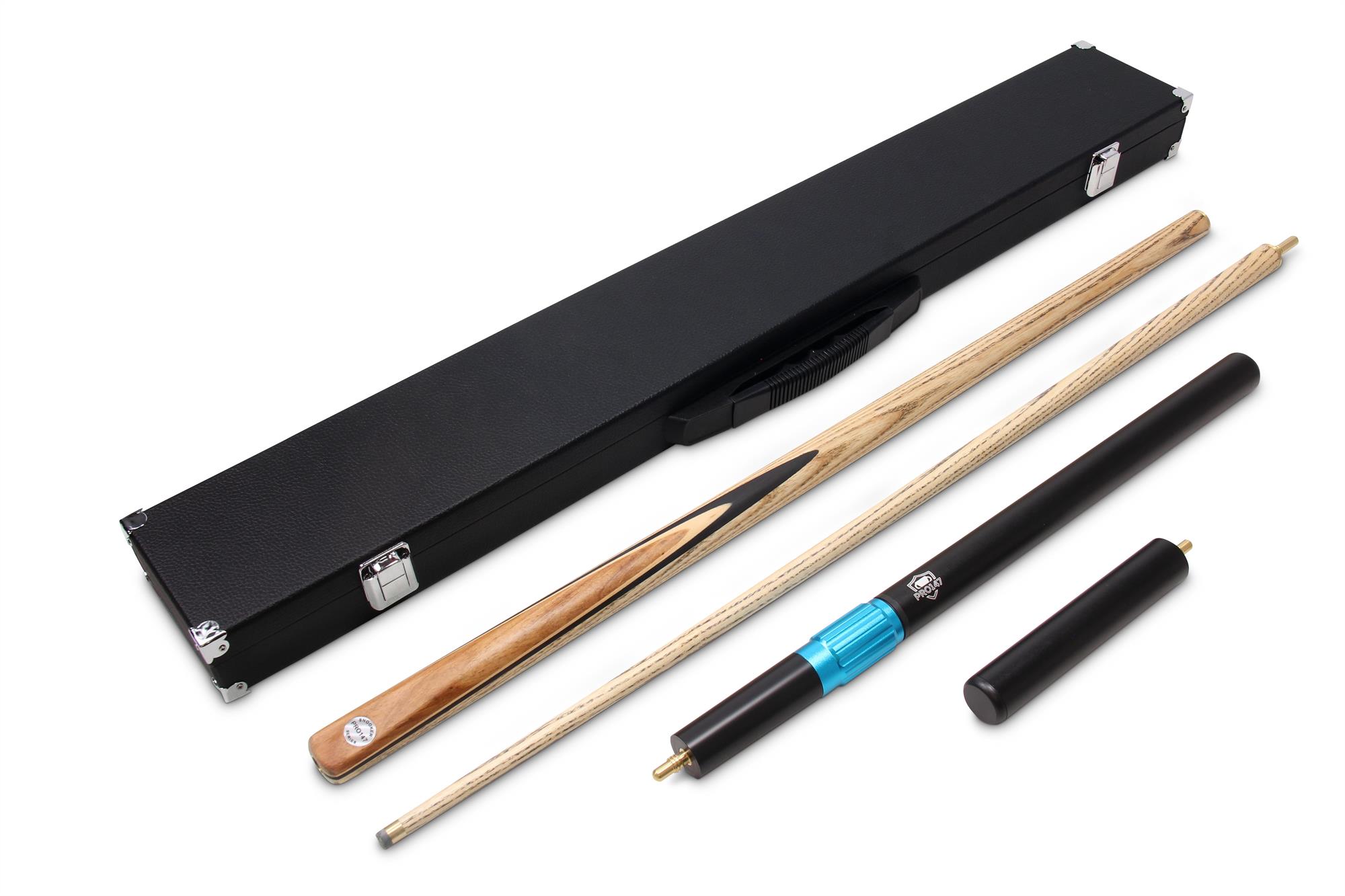 These traditional style PRO147 ash cues provide a stunning classic look and are excellent value for money. Made from premium ash with an elegant single faced rosewood, sapphire and ebony effect front splicing, this cue is sure to turn heads. The set includes matching long telescopic screw in extension, mini butt and 3 slot hard case to neatly house the whole set.