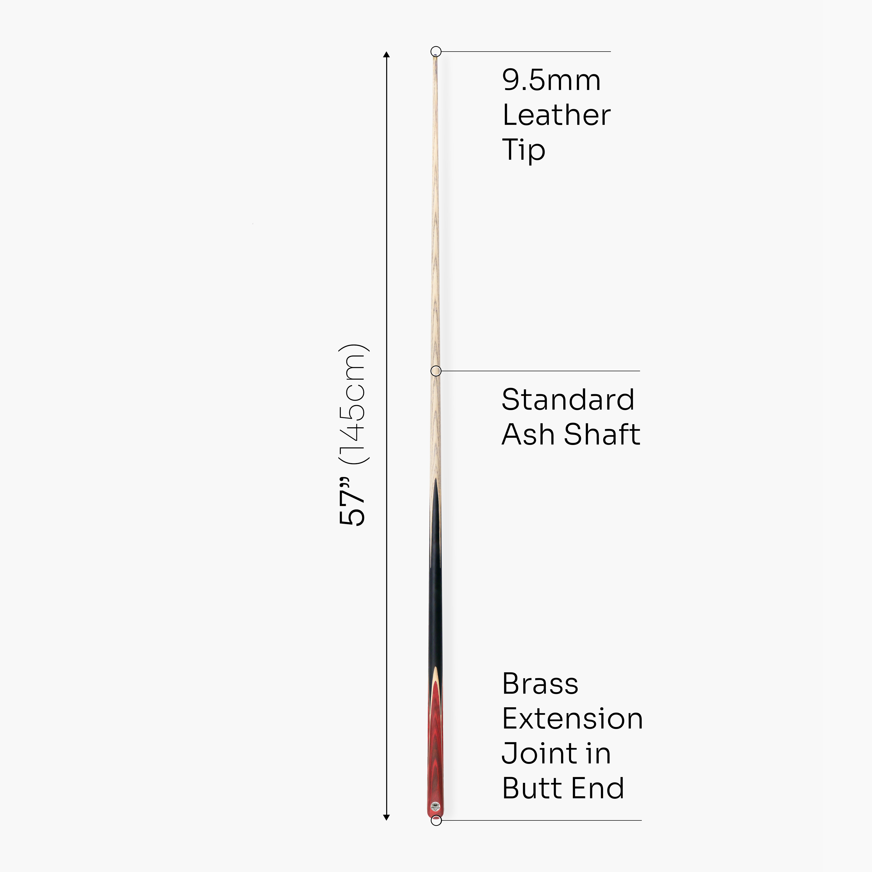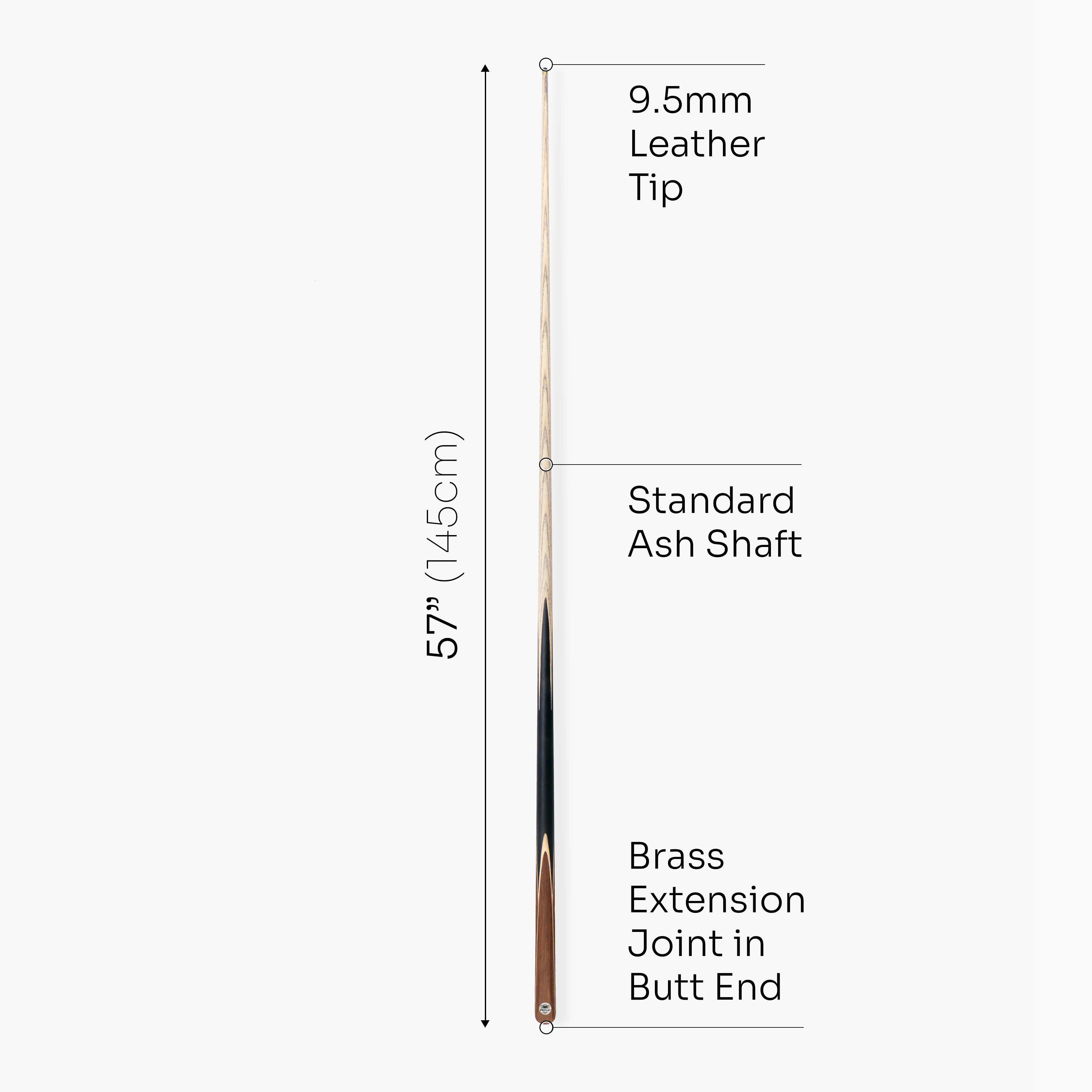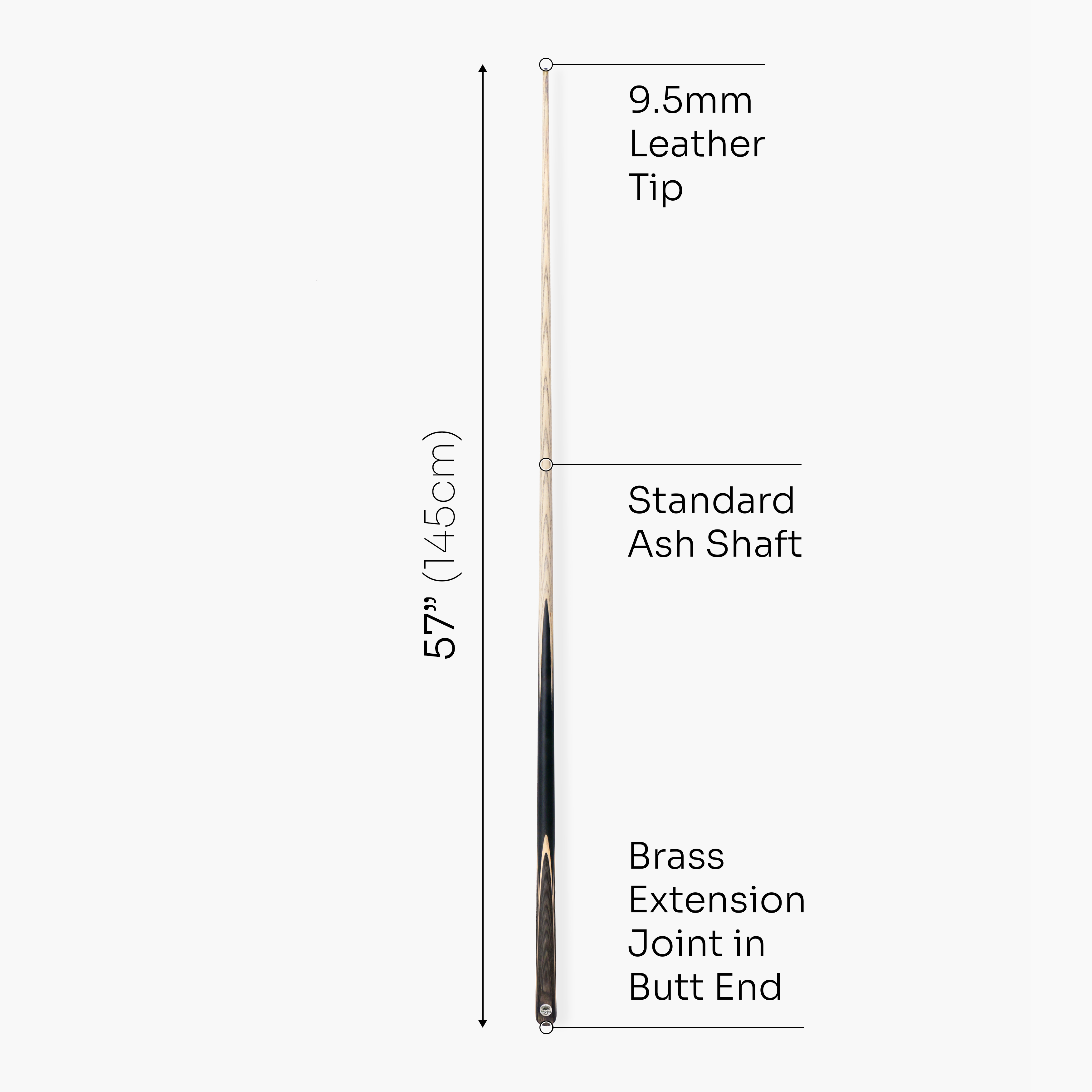 The one piece construction gives a player the ultimate feel for the shot compared to cues with joints. The 9.5mm tip size makes it suitable for use in both Snooker and English Pool.