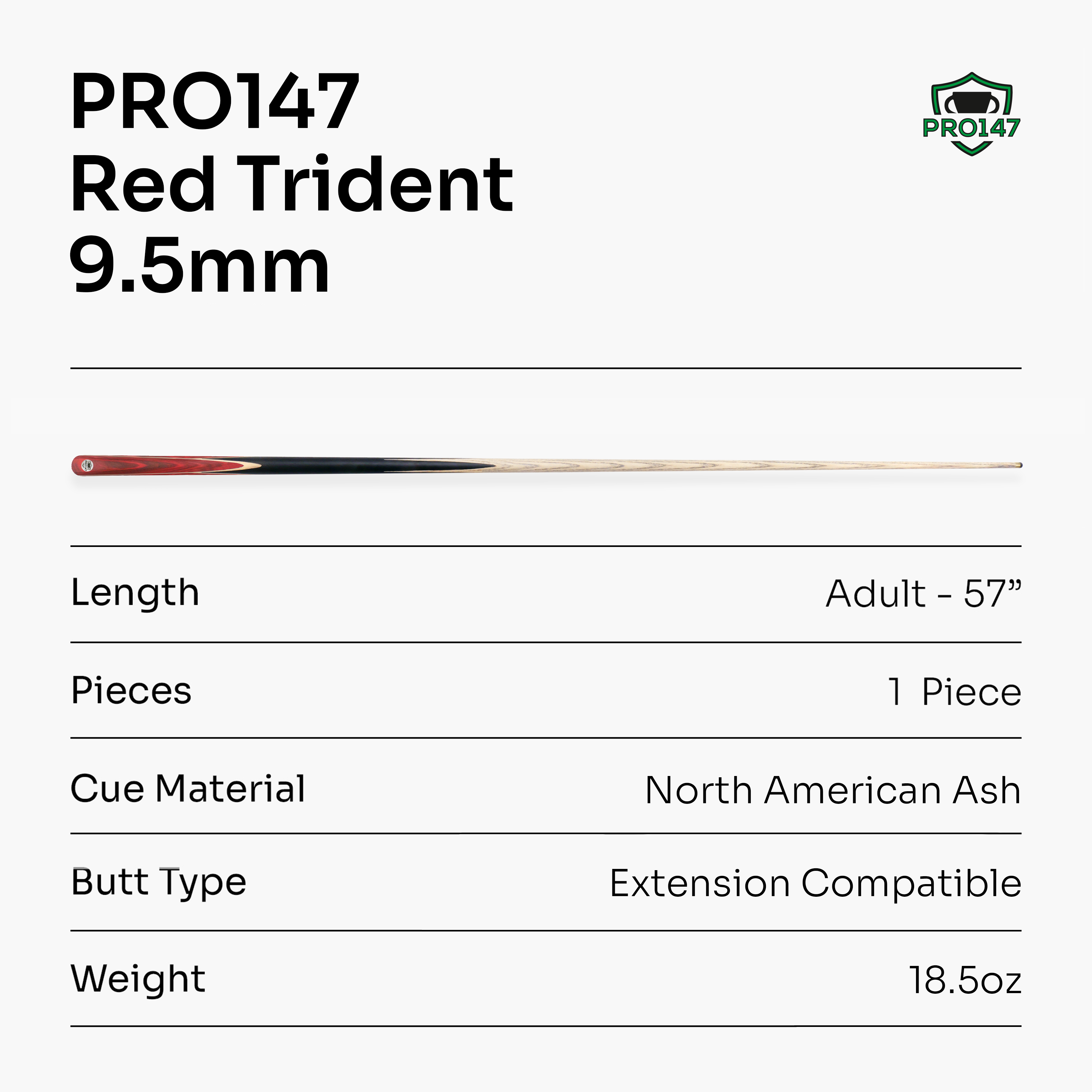 PRO147 Trident 57 Inch 1 Piece Hand Spliced Ash Snooker and Pool Cue with 9.5mm Tip