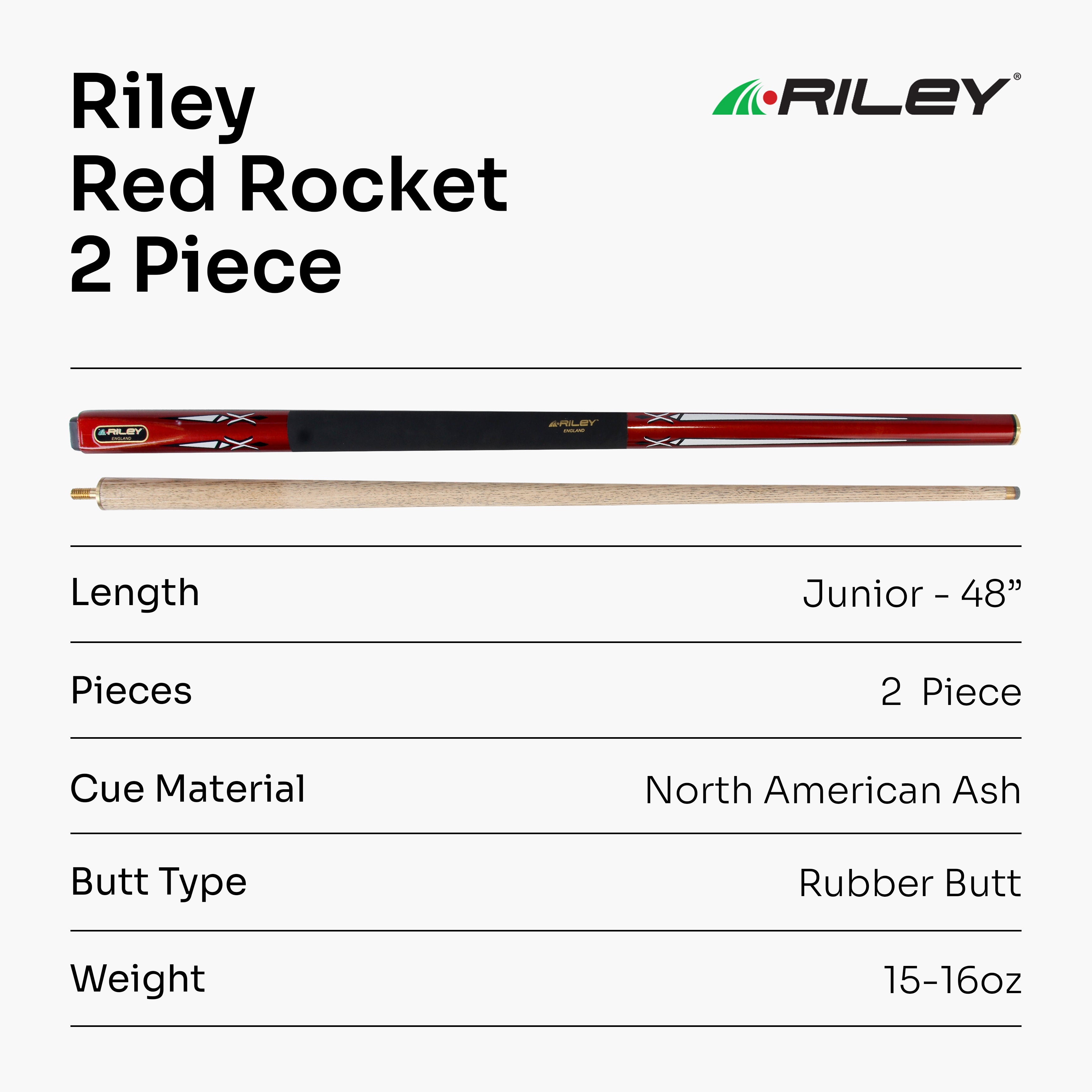 RILEY 48 Inch JUNIOR RED ROCKET 2pc Ash Pool Snooker Cue Ideal for Home & Kids