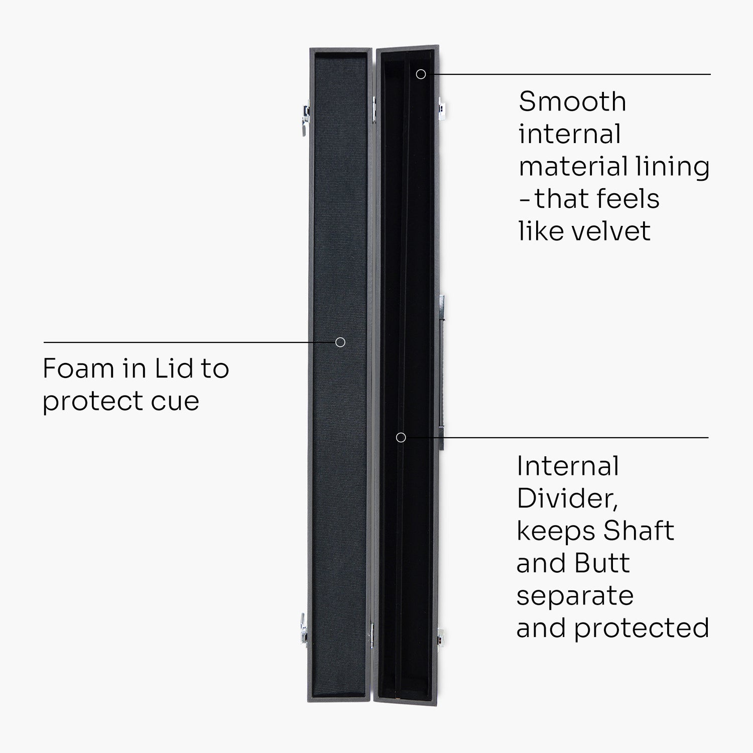 - A 57 inch (145cm) two-piece cue with a centre joint