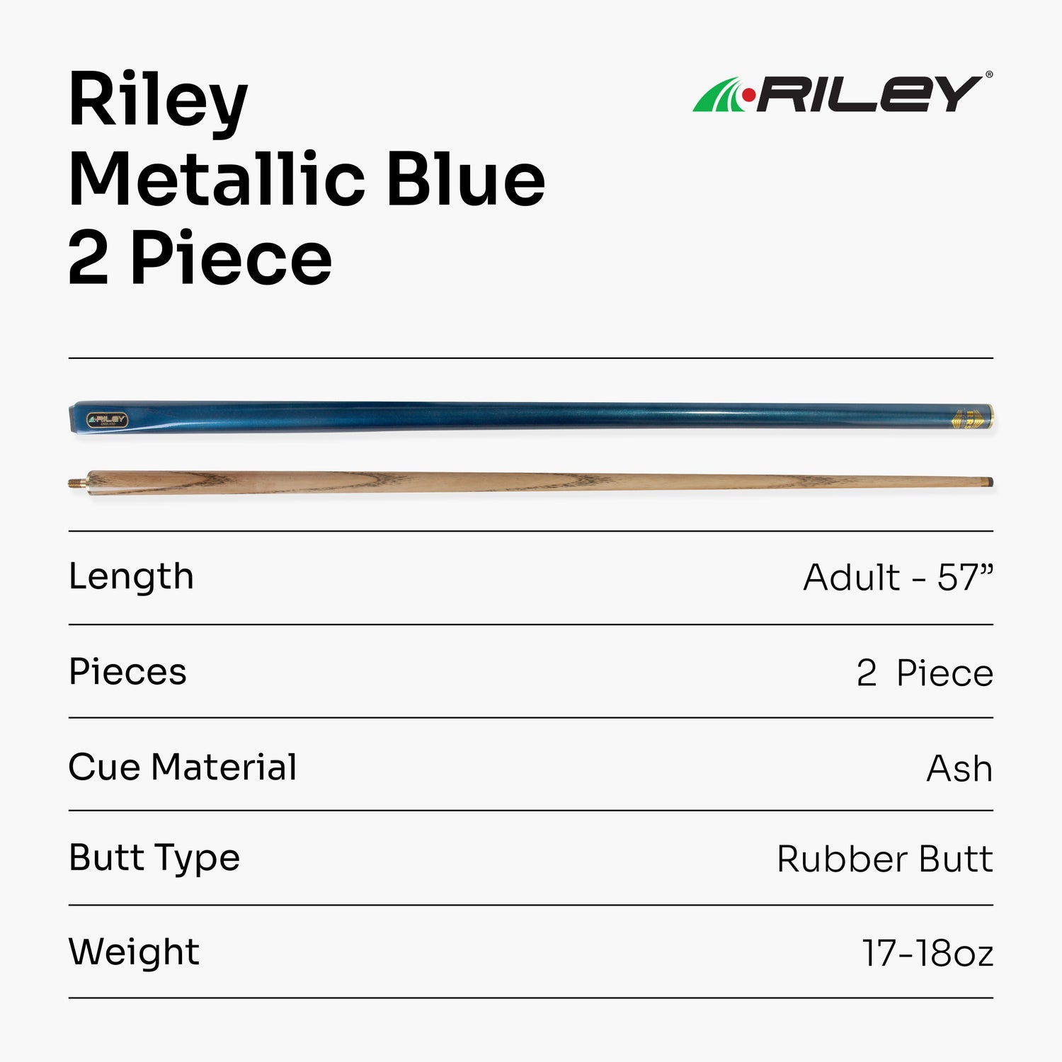 Riley METALLIC BLUE 2pc Ash English Pool Cue & Plain Black HARD CASE 8.5mm Tip