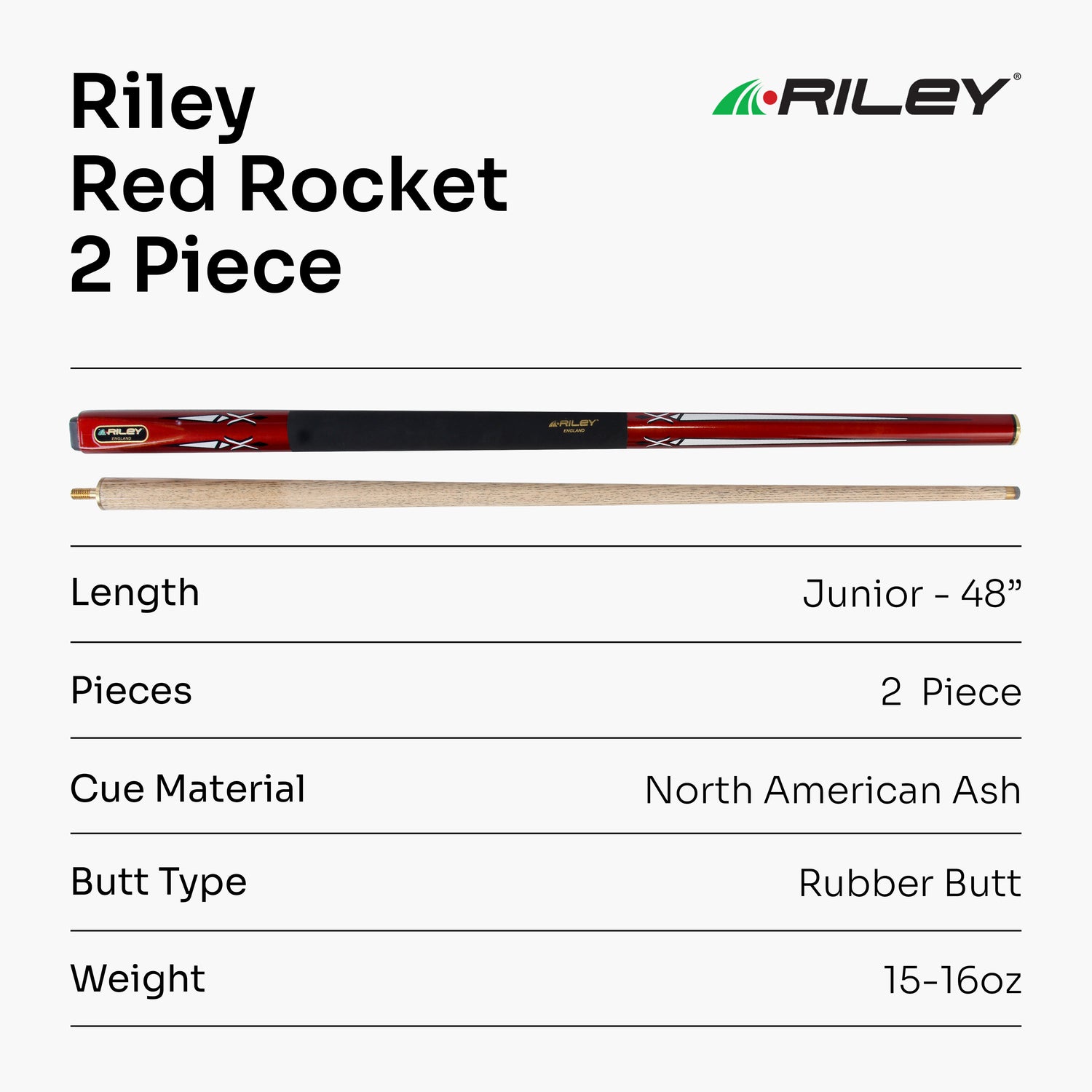 Riley Red Rocket 48 Inch 2 Piece Kids Cue and Case Set 9.5mm Tip with Riley Sleeve Case